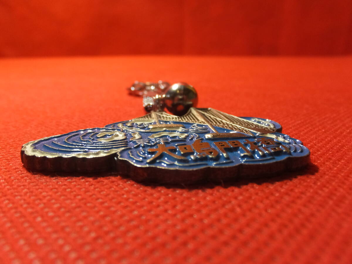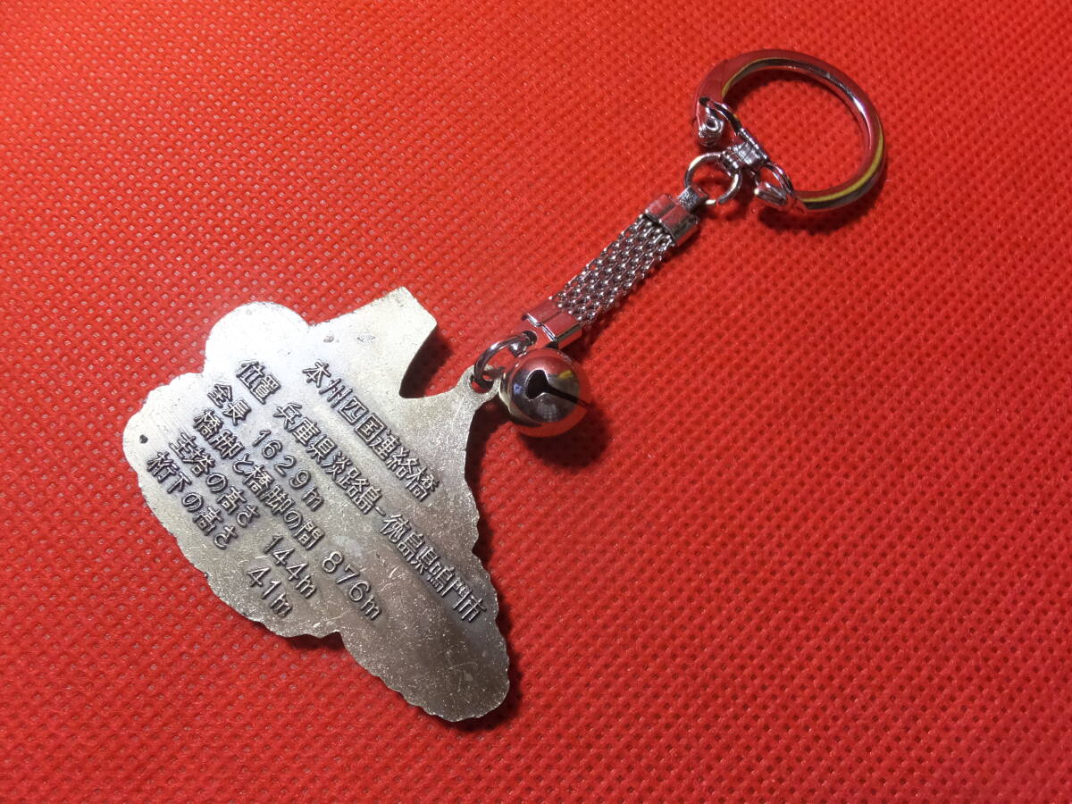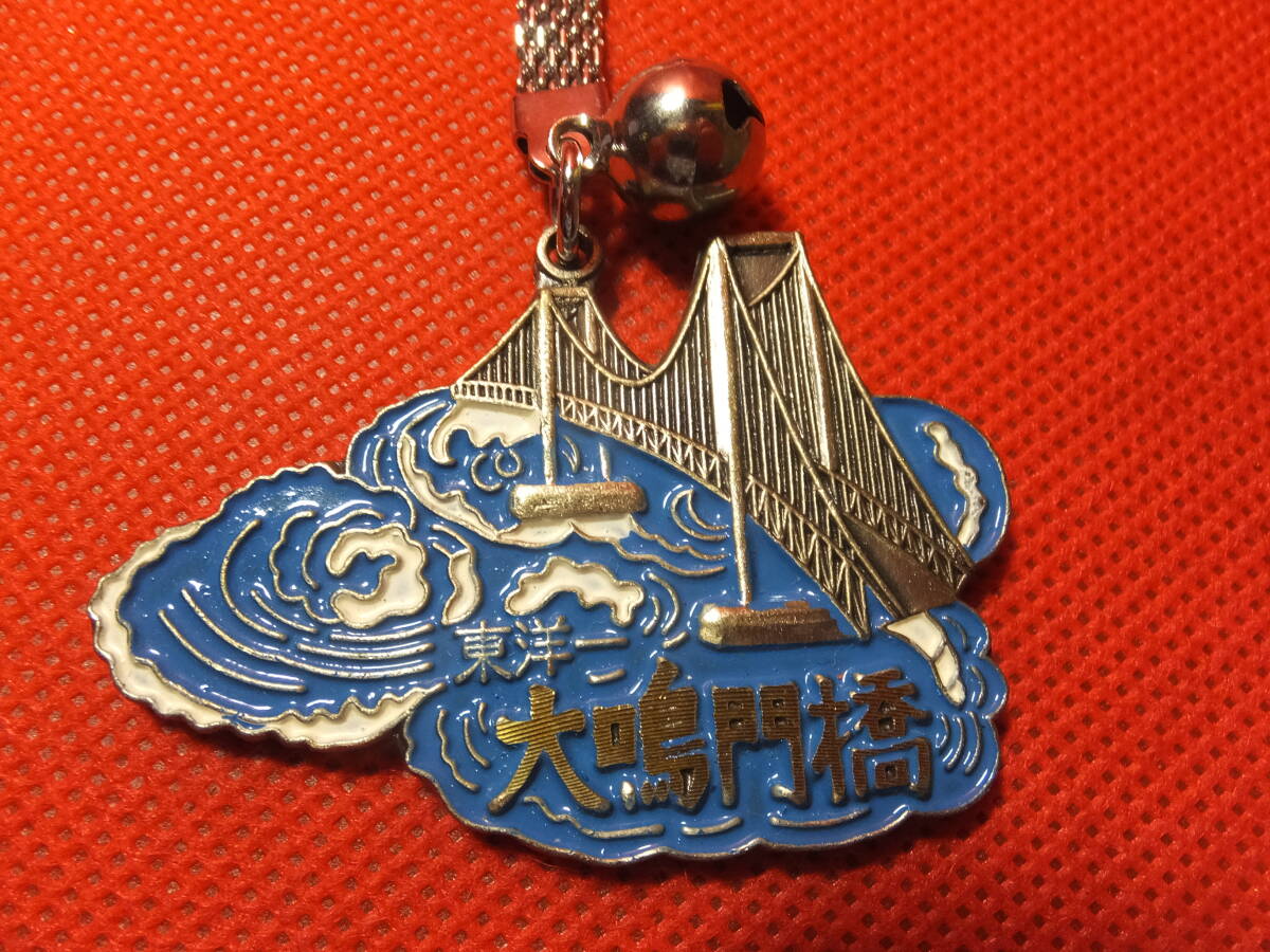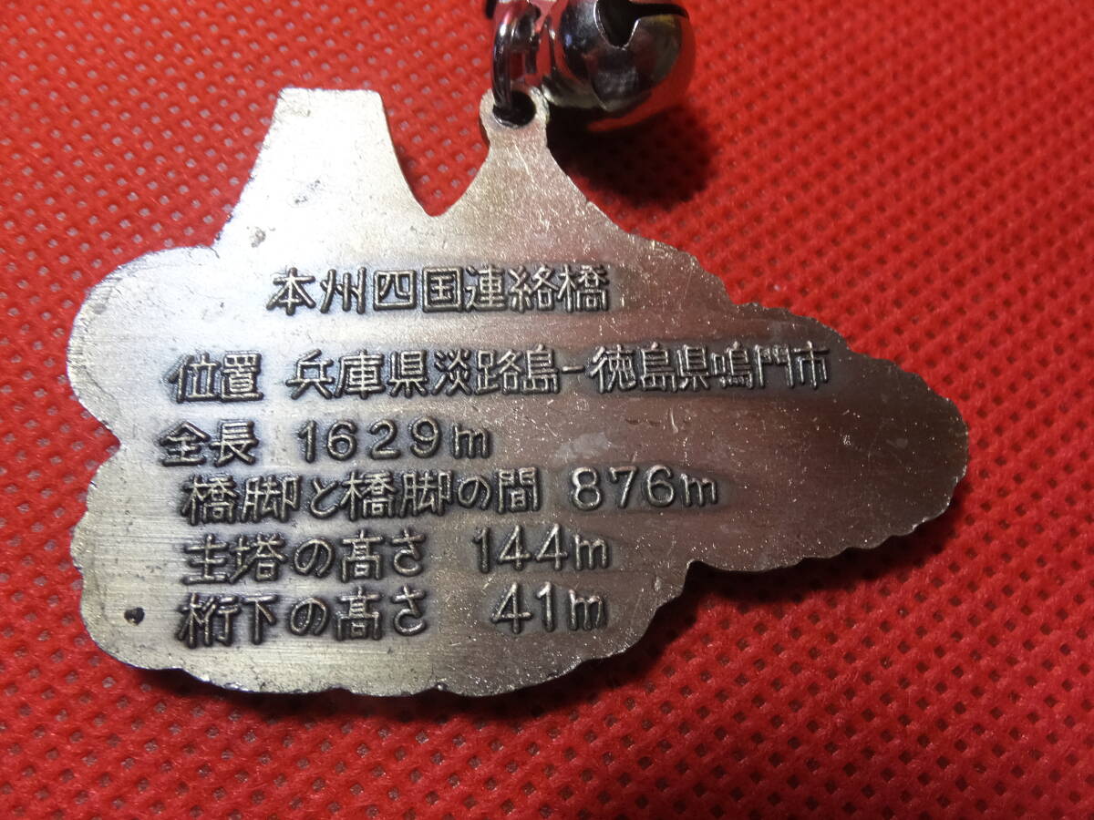 当時もの 東洋一 大鳴門橋 本州四国連絡橋 キーホルダー 鈴付き 本体部分の縦約3.6cm、横約5.2cm 中古