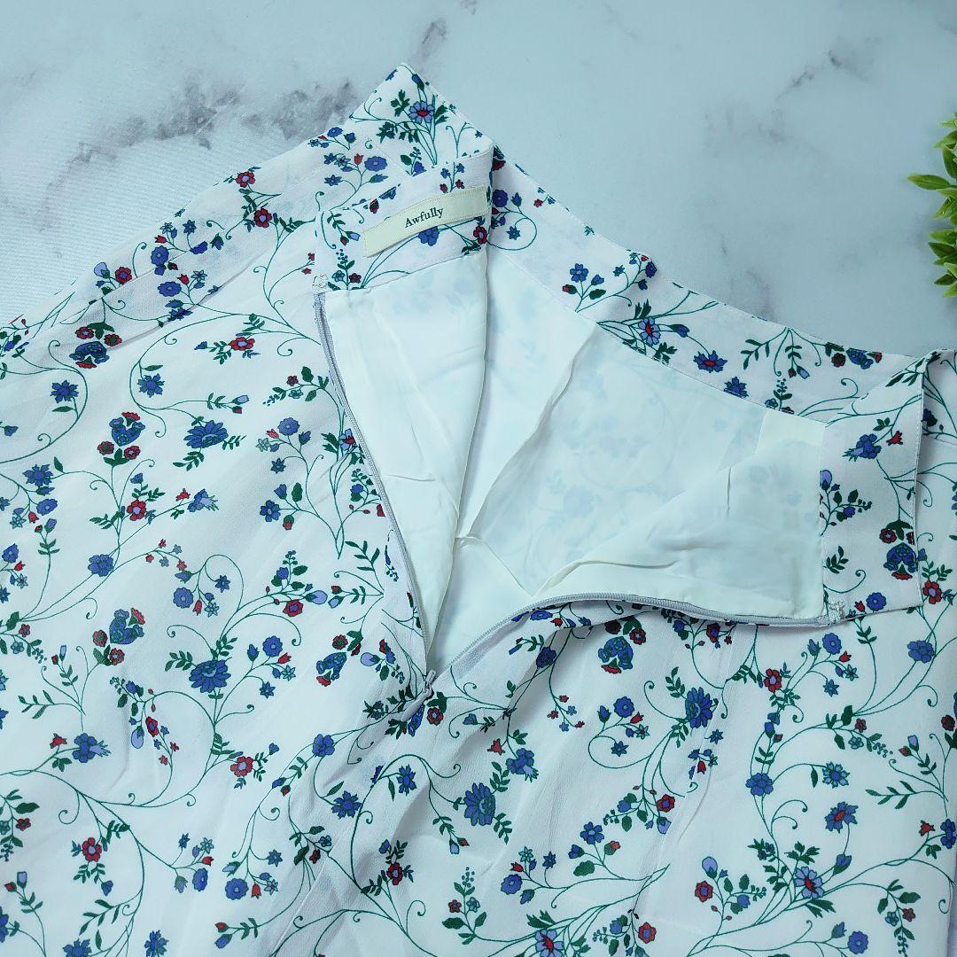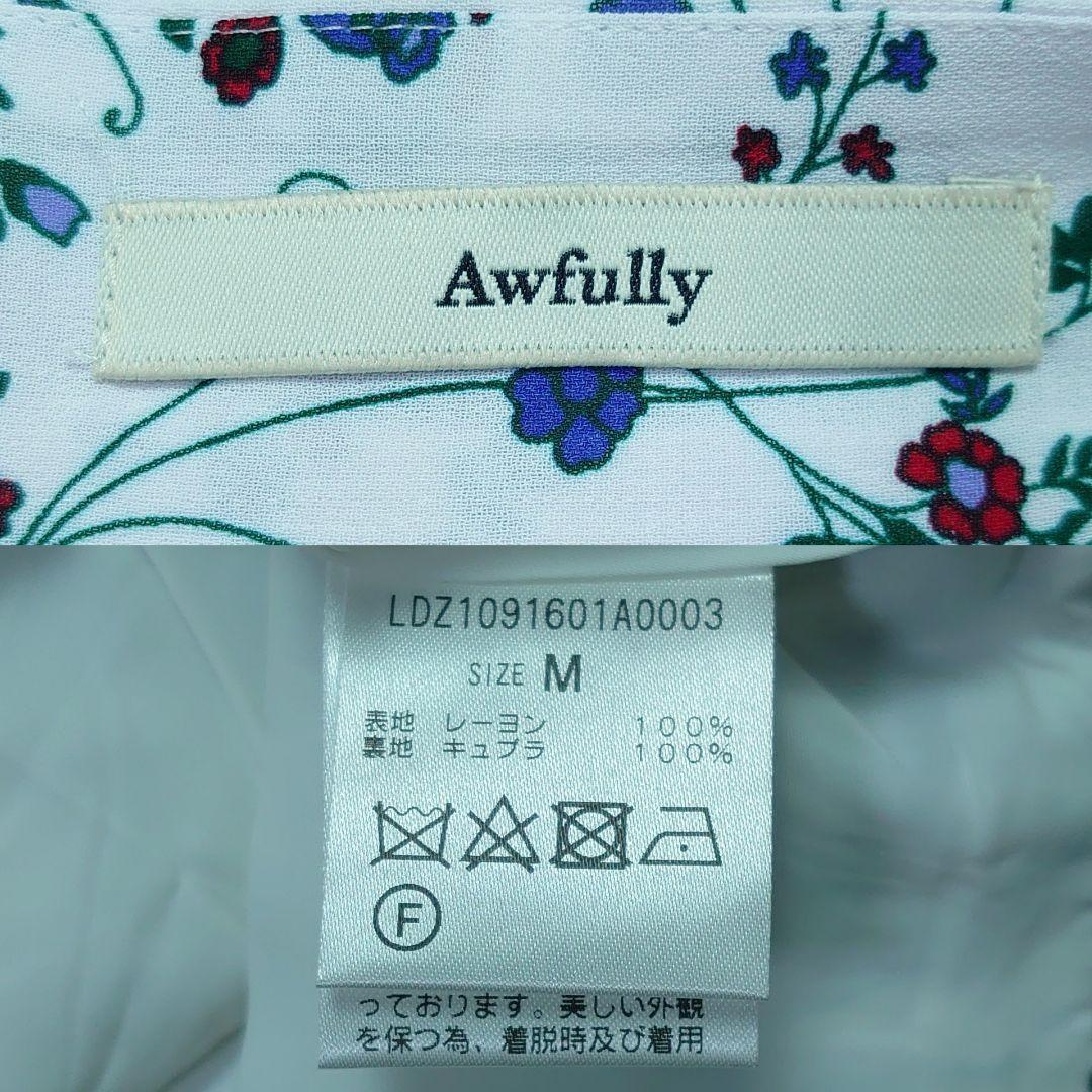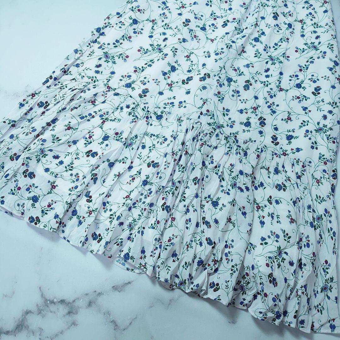 Awfully Loungedress オーフリー ラウンジドレス フローラルスカート ロング マキシ フリル ティアード M 総柄 花柄 フラワー 白 ホワイト バックファスナー レディース