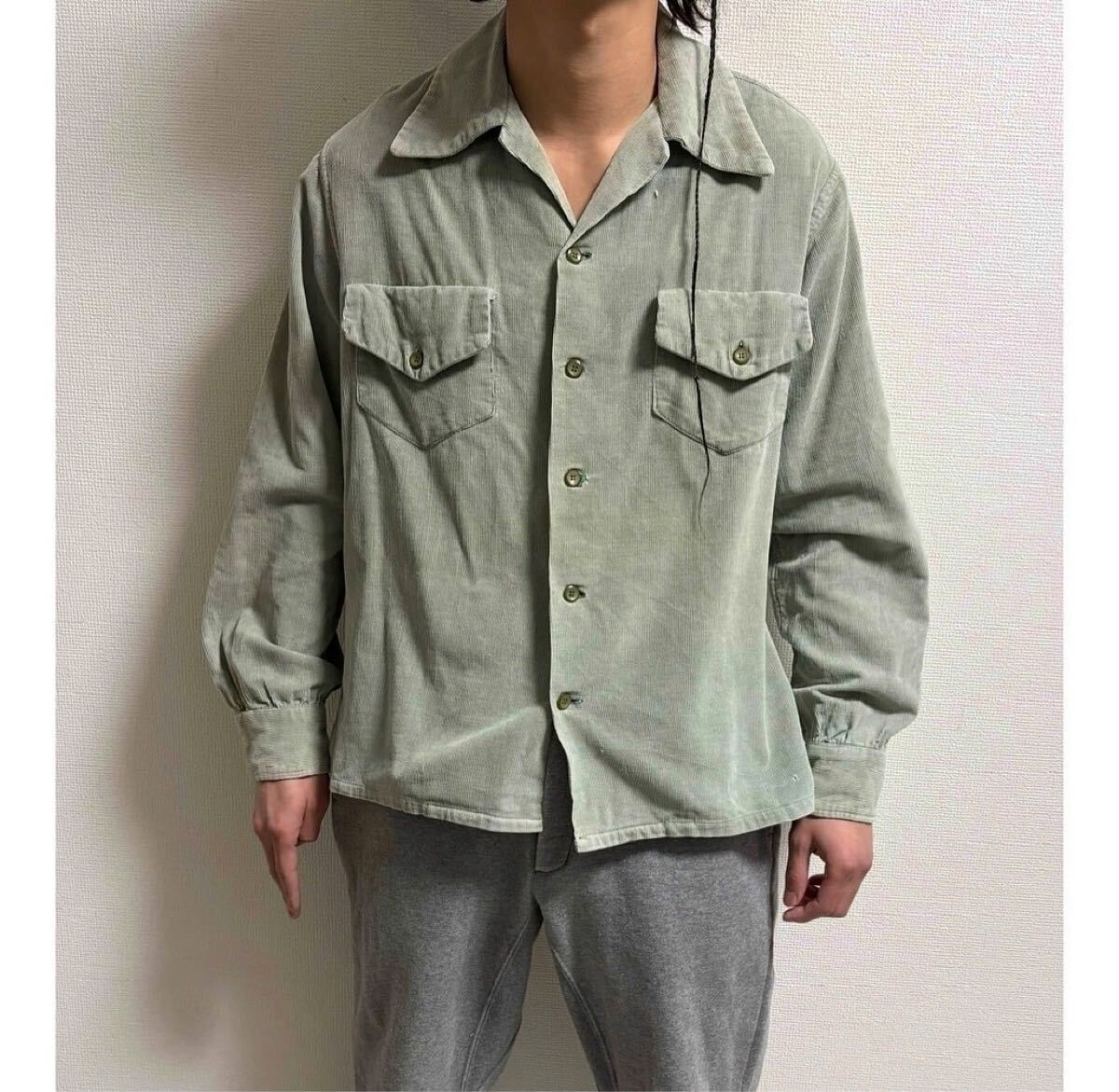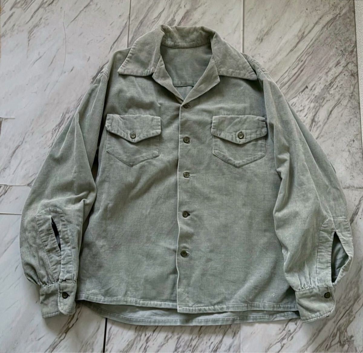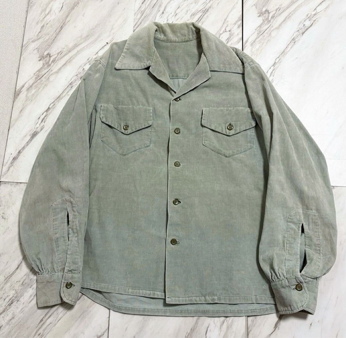 vintage 40s 50s 〜 60s made in usa mint green box silhouette corduroy shirt " over size "