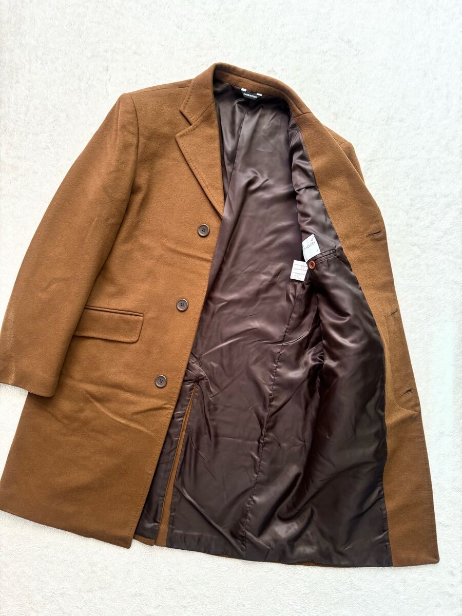 カシミヤを混紡した少し起毛した風合いの良い上質な生地を使いシンプルでモダンな美しいシルエットがとてもお洒落なチェスターコートになります。