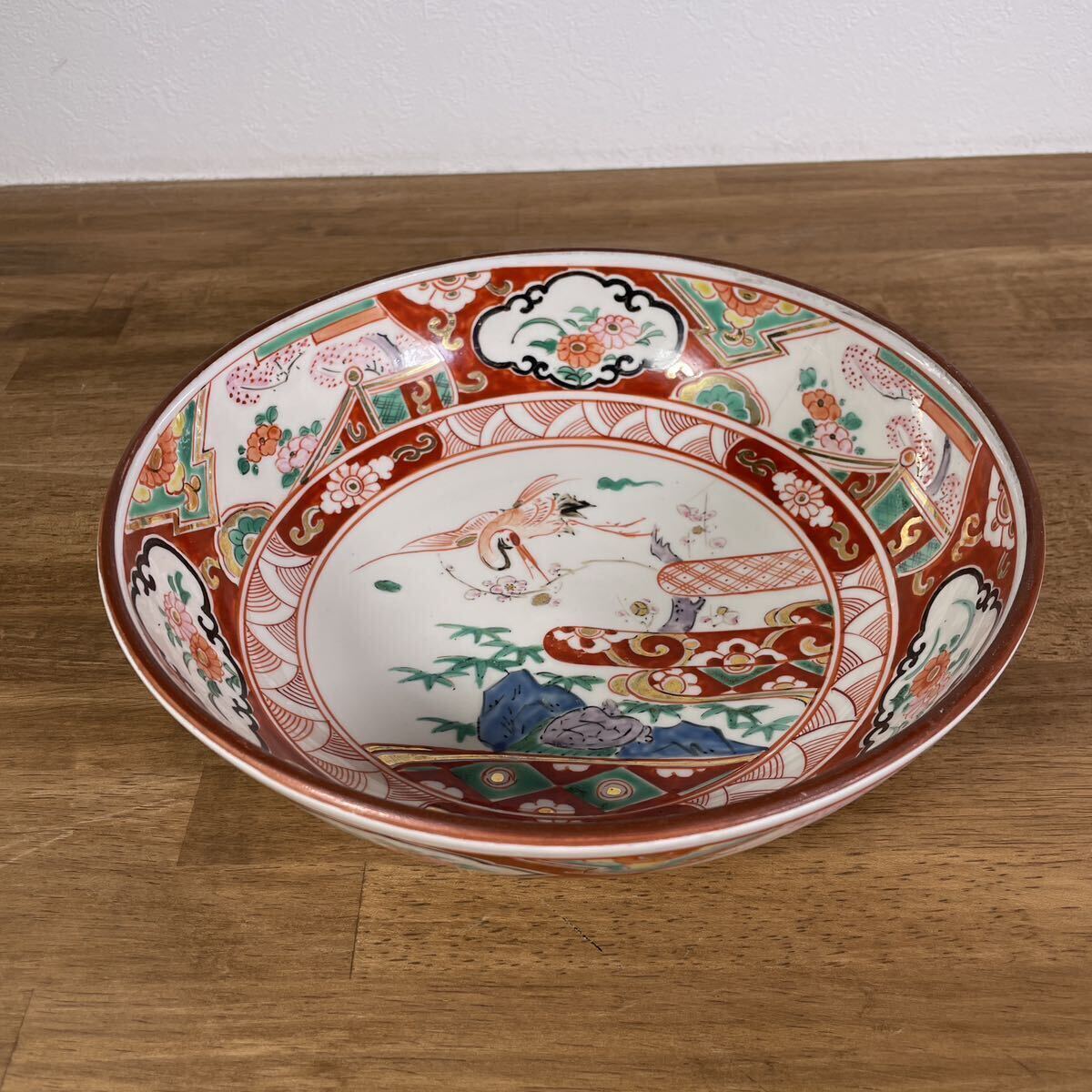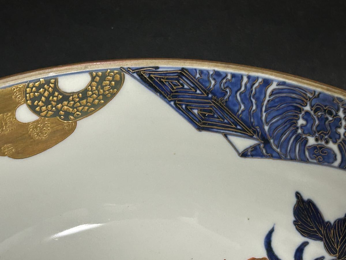 古伊万里 九谷 華やかで豪華な皿&鉢 2点 セット 古美術 骨董 名家掘出し物 色絵 飾り皿 金彩 赤絵 牡丹 鶴 亀 縁起物