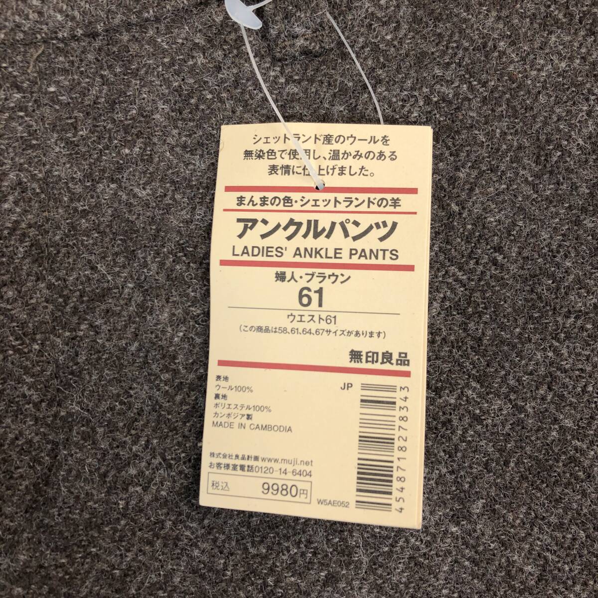 タグ付き 定価9980円 無印良品 MUJI ウール アンクルパンツ レディース61サイズ