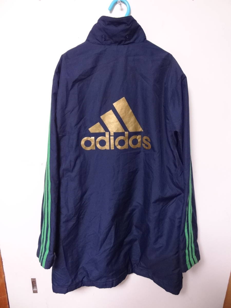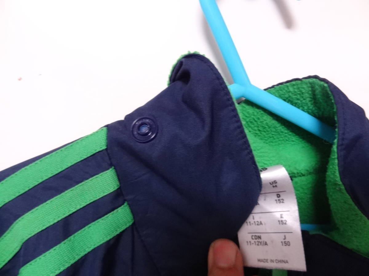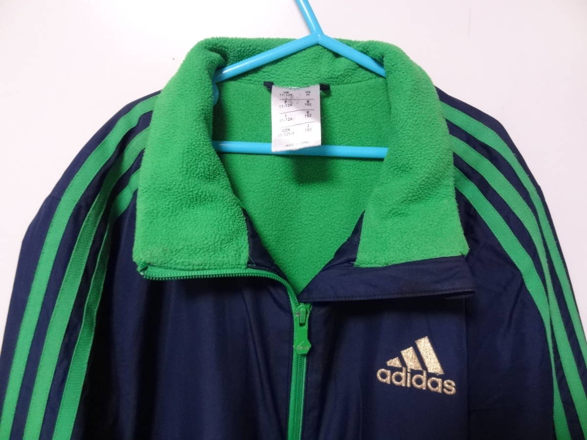 送料無料 アディダス adidas 子供服キッズ男&女の子 紺X緑色ポリエステル100%素材裏フリース付き秋冬物サッカー等スポーツ中綿コート 150