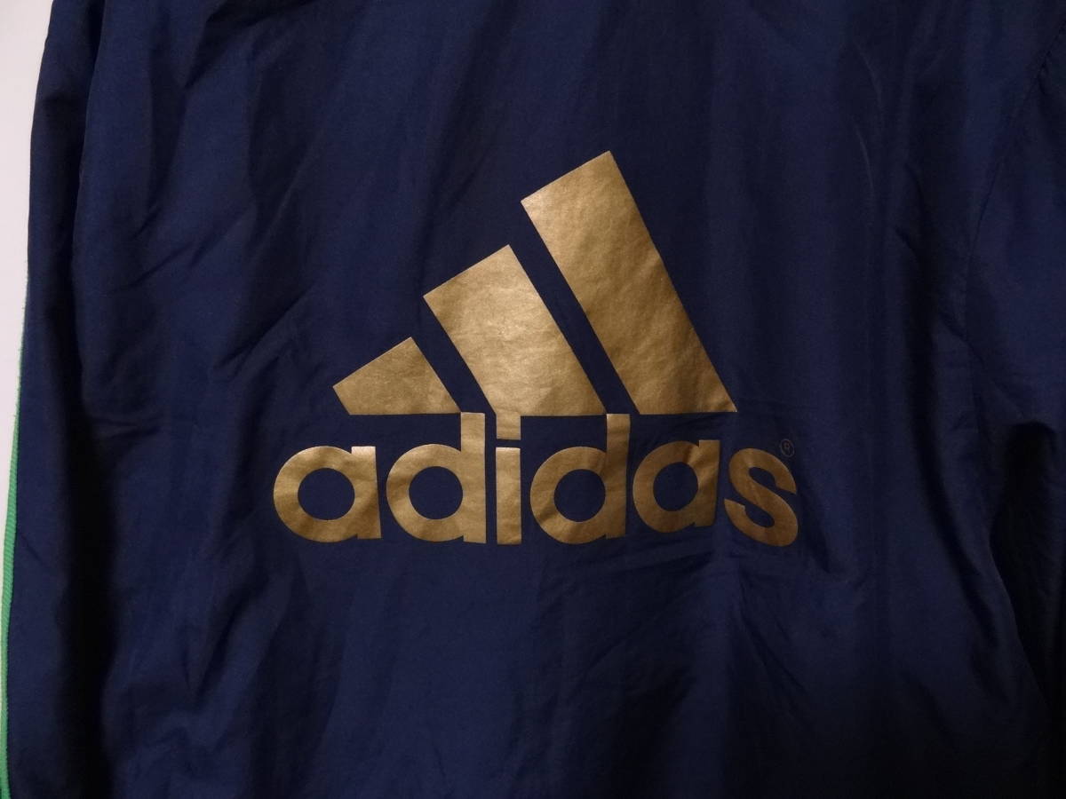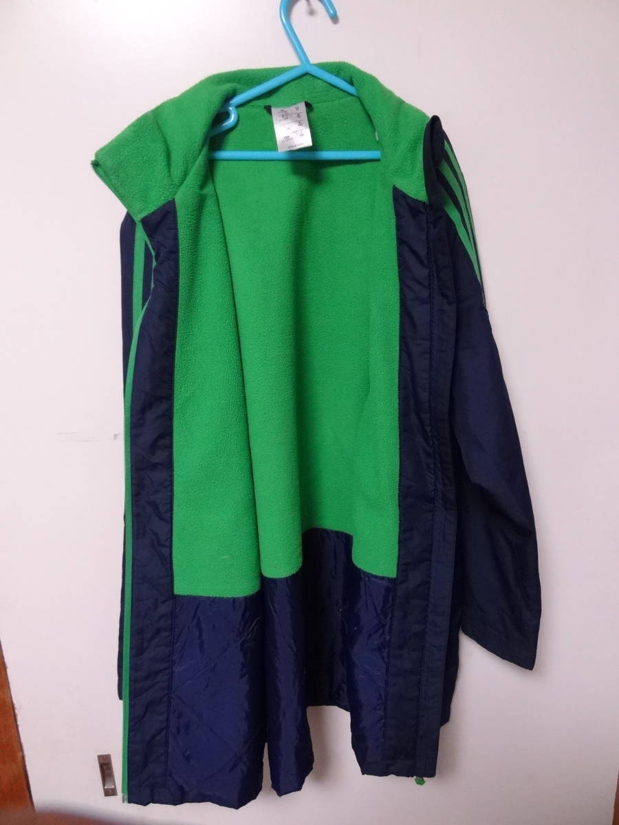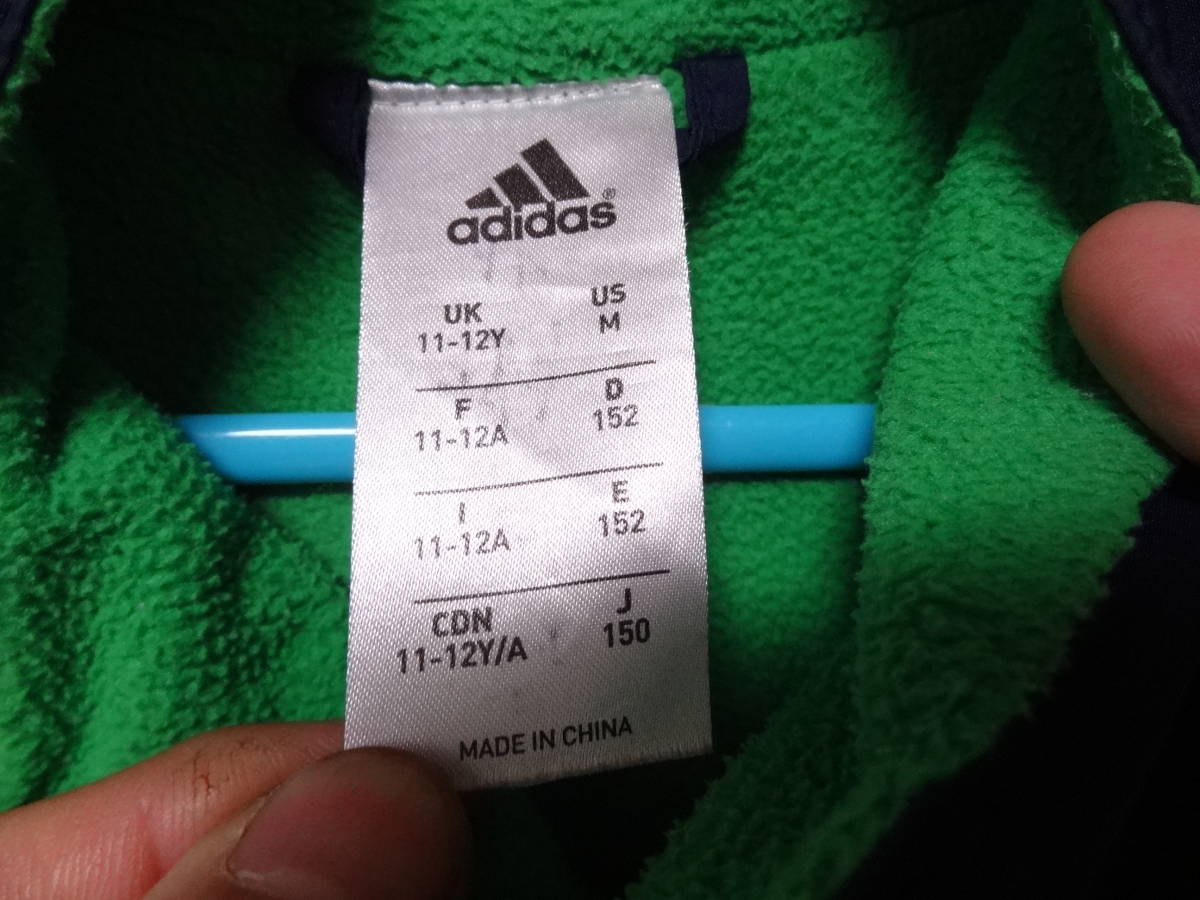 送料無料 アディダス adidas 子供服キッズ男&女の子 紺X緑色ポリエステル100%素材裏フリース付き秋冬物サッカー等スポーツ中綿コート 150