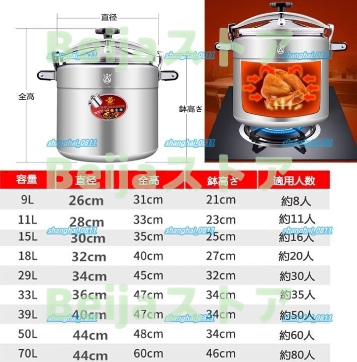 圧力鍋 業務用 ホテルの万能 スープ鍋 特大型圧力鍋 超高圧 アルミ合金防爆型増粘高圧鍋 気密性が高く 安全ロック機能 33L 直火ガス専用