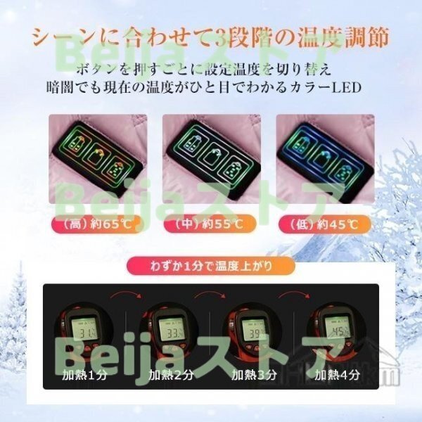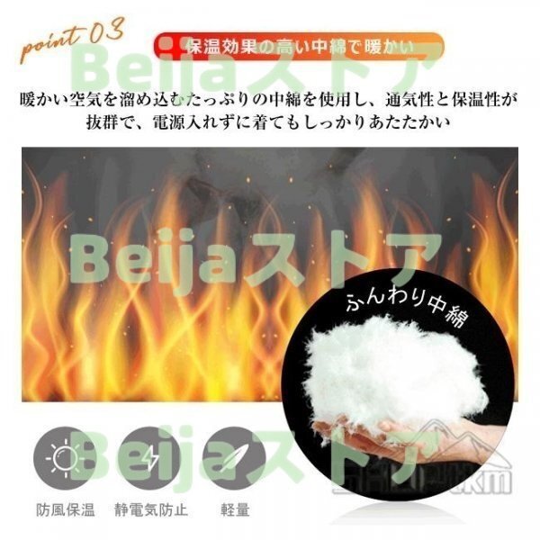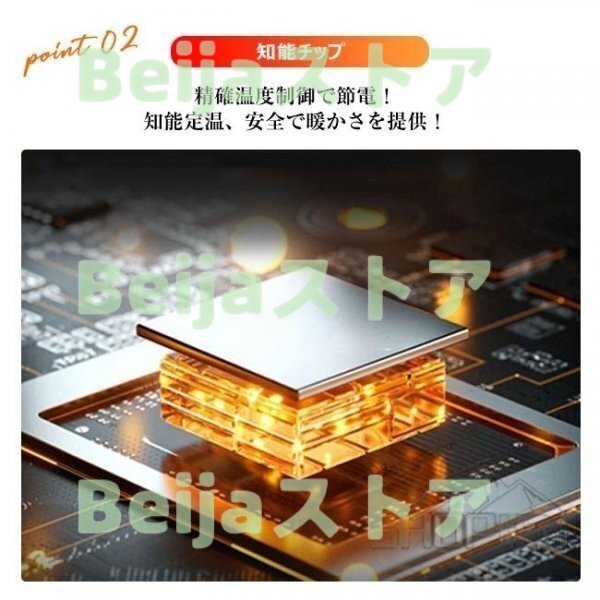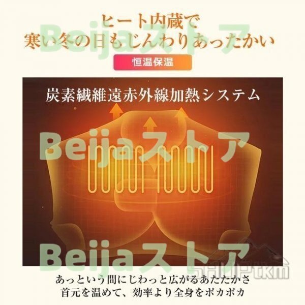 ・多数のヒーターを内蔵しており、前後の各エリアに科学的に配置しています。内面には蓄熱材があり、体から発する熱を有効的に反射させ、同時にお腹、腰、首周りを温めます。