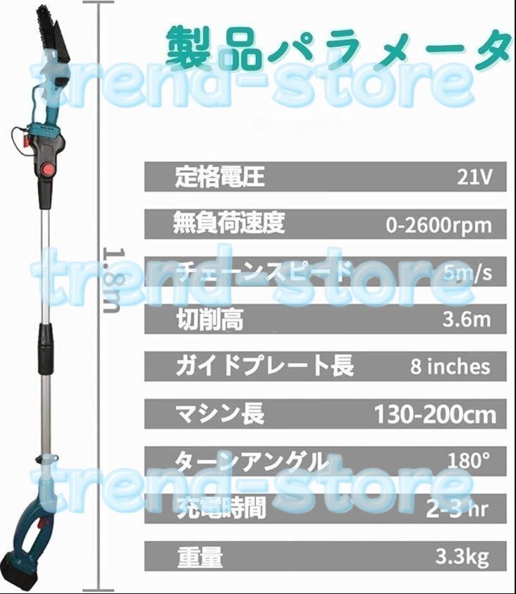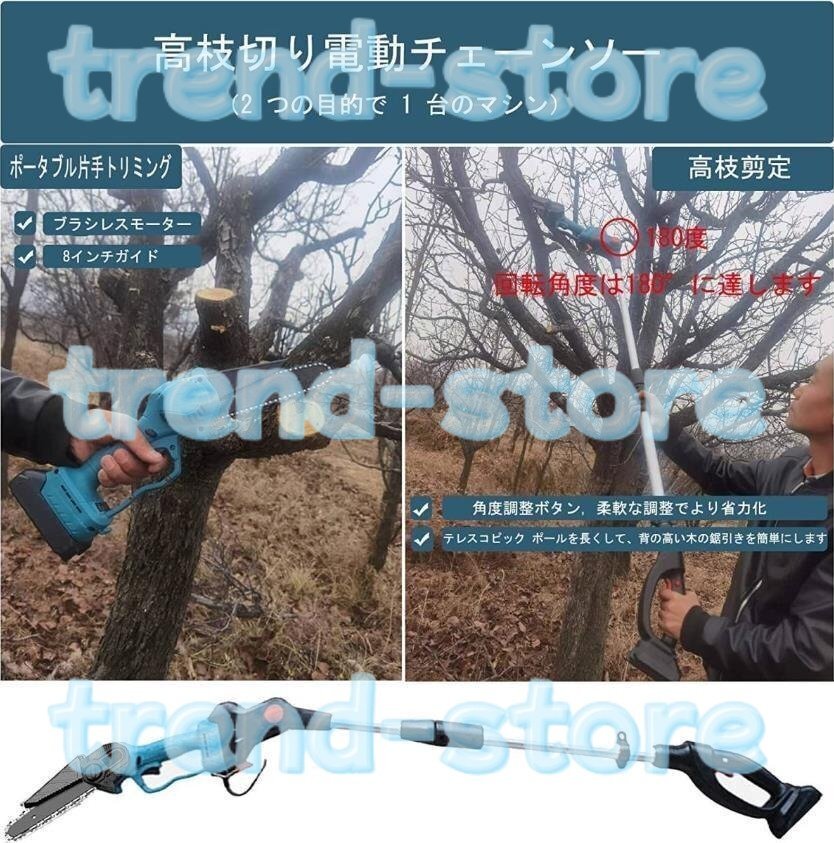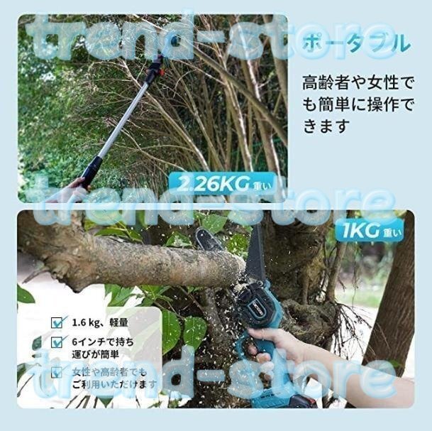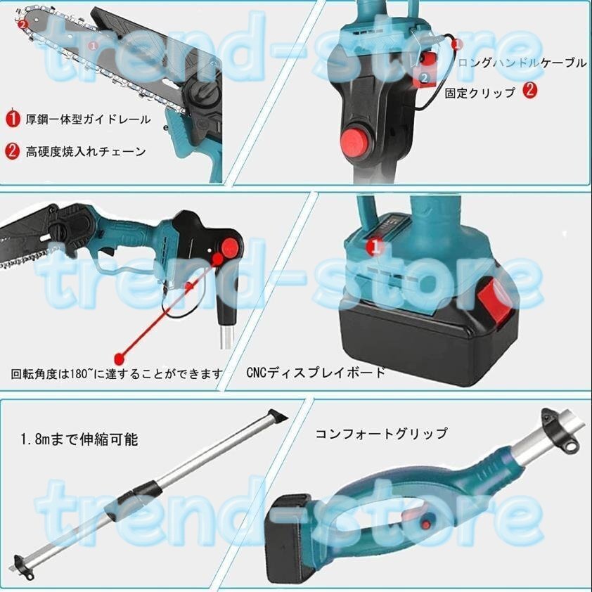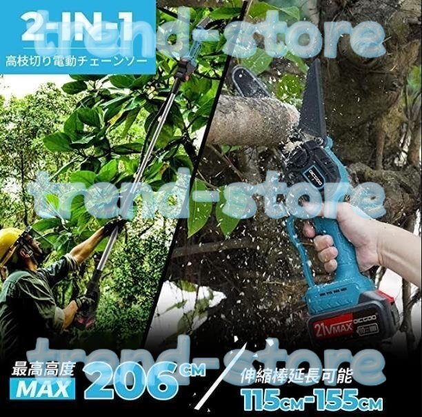 高枝切り電動チェーンソー 一台役 充電式ポールチェーンソー 21V コードレス 電動高枝切りチェーンソー 18Vマキタバッテリー 併用 U135