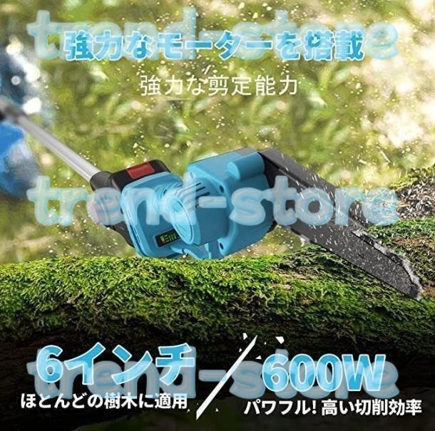 【強力ブラシレスモーター】 6インチ高枝切りチェーンソーはブラシレスモーター設計を採用している。出力は600ワットで、直径8 CMの原木を切断するのに4秒ほどかかります。より大きな動力、より長い寿命、より速い冷却速度、より高い効率を提供することができます。