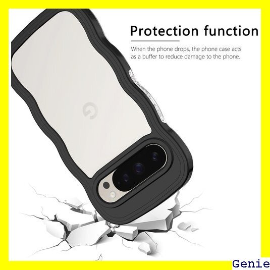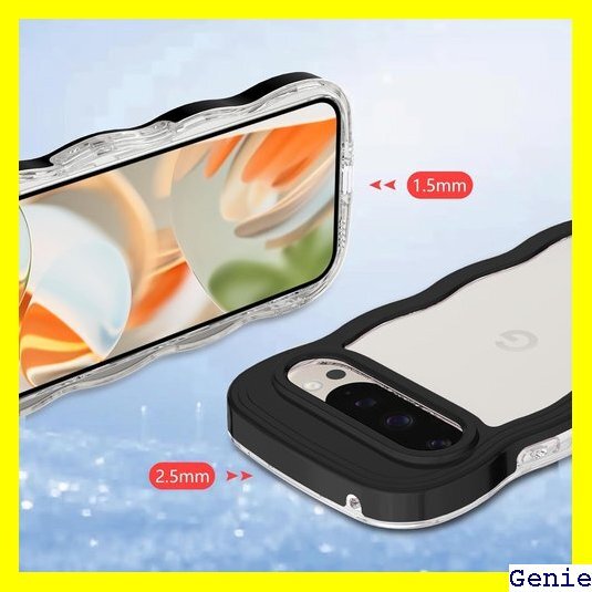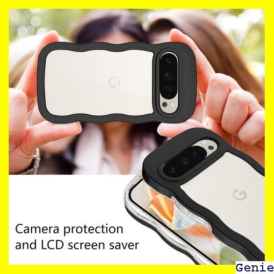 HILEGENER Google Pixel 9/9 Pro かわいい ケース 波状フレーム うねうね グーグル ピクセル9 プロ 6.3“用滑り止め スマホケースウェーブ デザイン 手にフィット スマホカバー 韓国 可愛い 女性用 女子向け クリア ソフト TPUカバー 波状エッジ ソフトシェル ケース 人気 落下防止 ワイヤレス充電対応 Pixel 9/9 Pro-ブラック 44