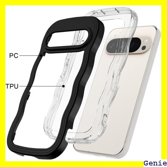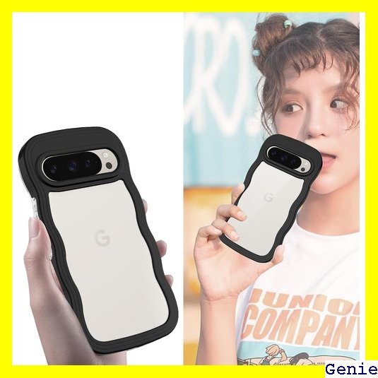 HILEGENER Google Pixel 9/9 Pro かわいい ケース 波状フレーム うねうね グーグル ピクセル9 プロ 6.3用滑り止め スマホケースウェーブ デザイン 手にフィット スマホカバー 韓国 可愛い 女性用 女子向け クリア ソフト TPUカバー 波状エッジ ソフトシェル ケース 人気 落下防止 ワイヤレス充電対応(Pixel 9/9 Pro-ブラック)
