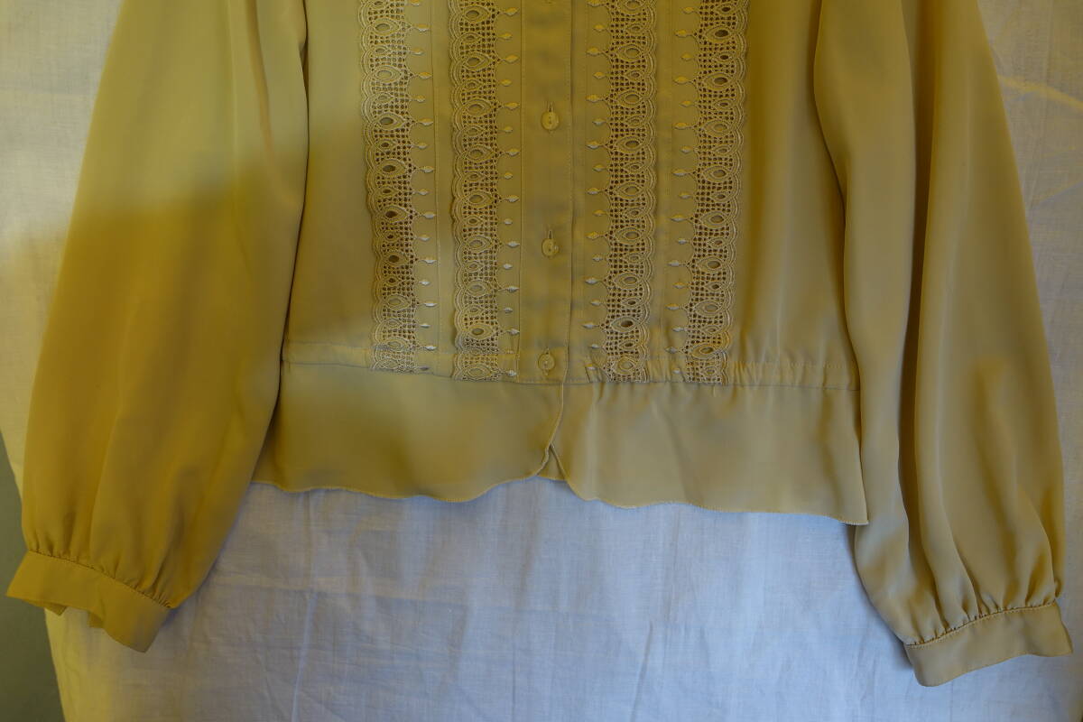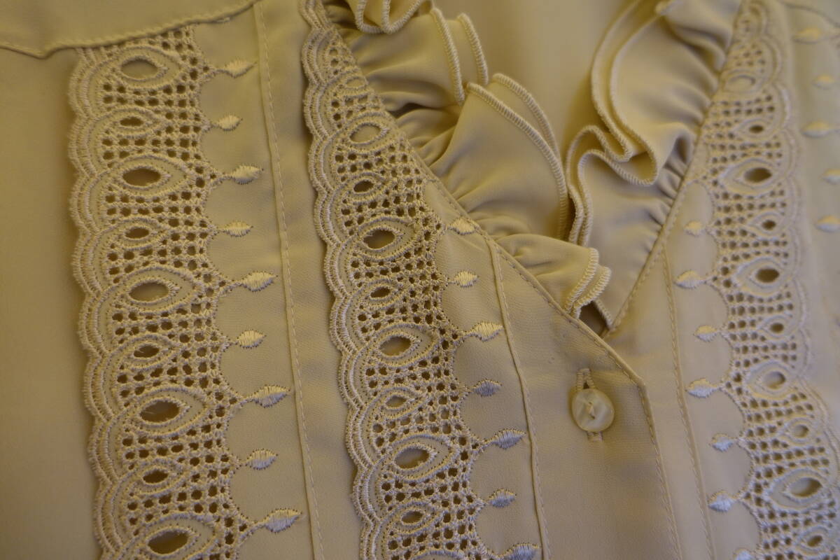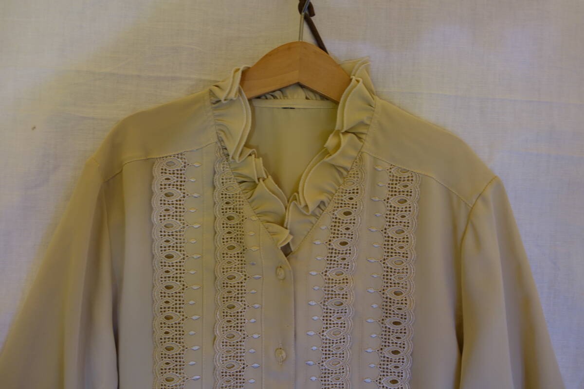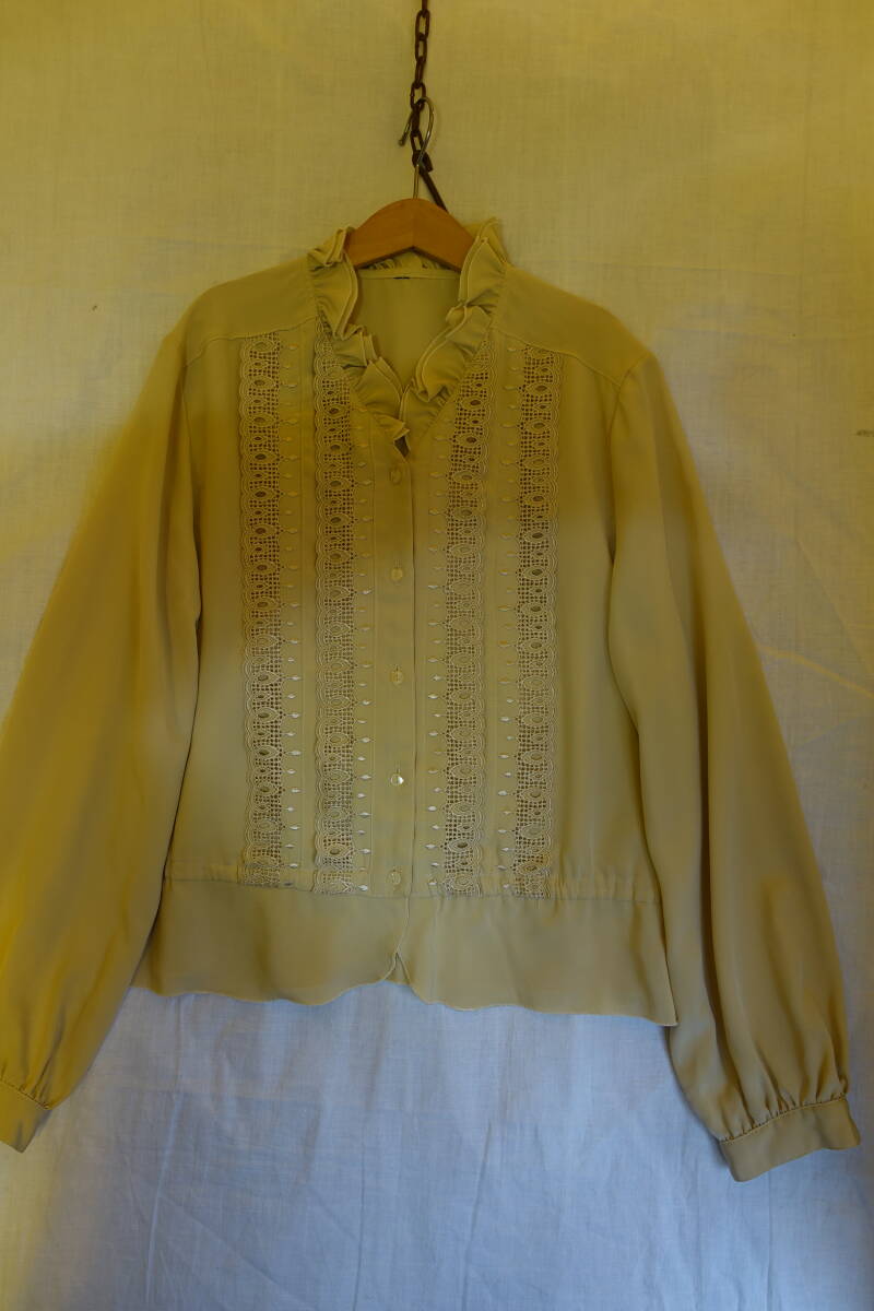 ○[60s70s80s vintage ヴィンテージ フリル カットワーク刺繍 レトロシャツ]USED古着 昭和レトロ・モダン・モッズ