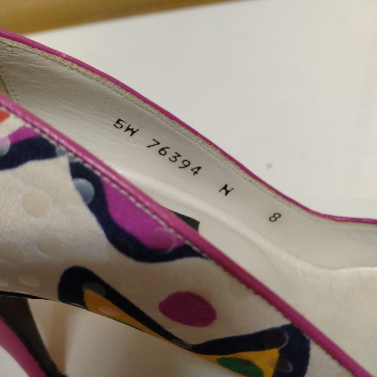 ・総柄ナイロンのアッパーにクリアドットが施されたデザインです。 サイズはおそらく実質23.5cm前後になるのではと思います。