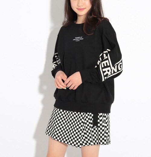 新品 PINK-latte ロゴジャカード袖切り替えトップス ブラック(019) 14(140cm) 定価3289円