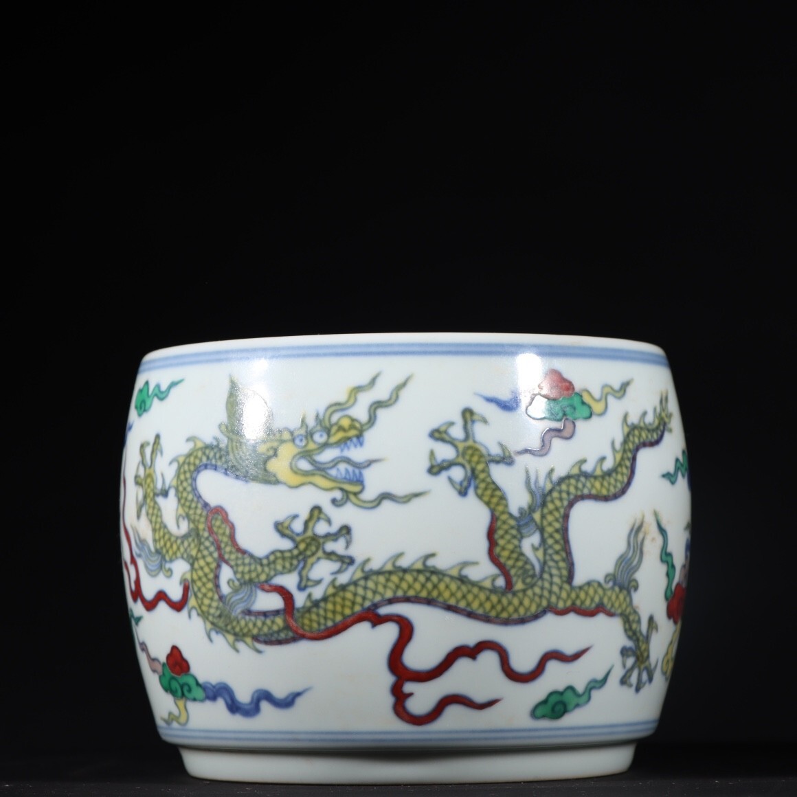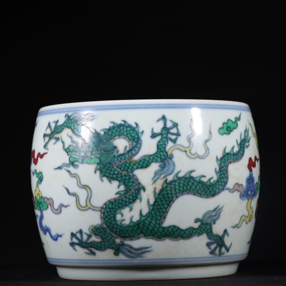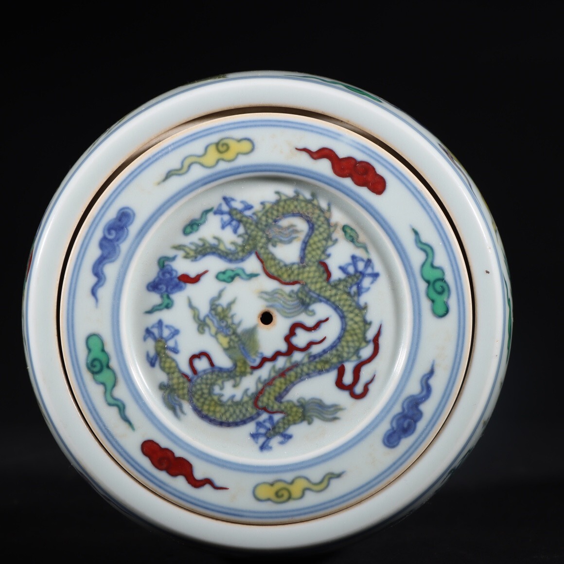 明代 大明成化年製 陶磁器 鬥彩雲龍紋蟋蟀罐【仁】染付 置物擺件 古賞物 古美術 中国古玩 蔵出