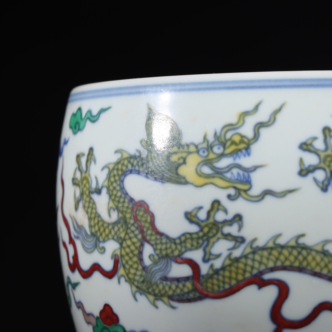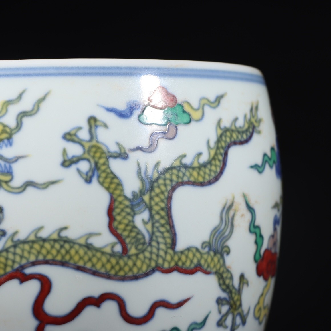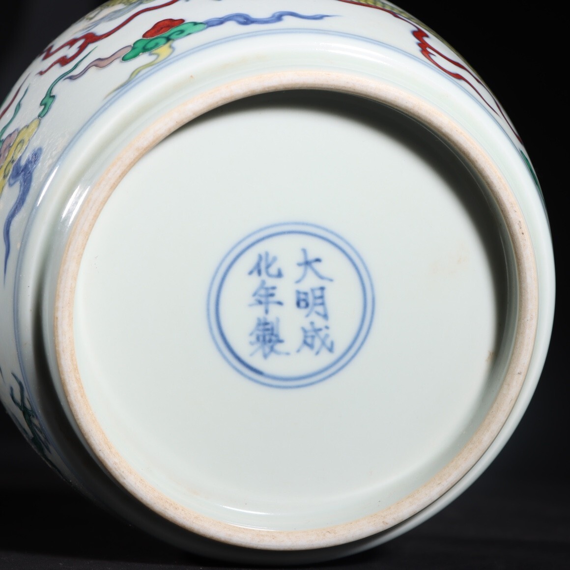 明代 大明成化年製 陶磁器 鬥彩雲龍紋蟋蟀罐【仁】染付 置物擺件 古賞物 古美術 中国古玩 蔵出