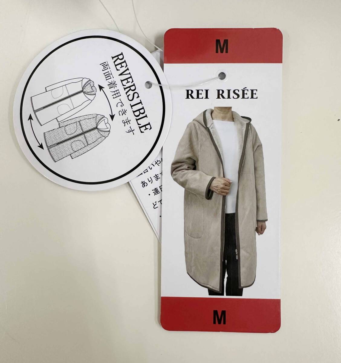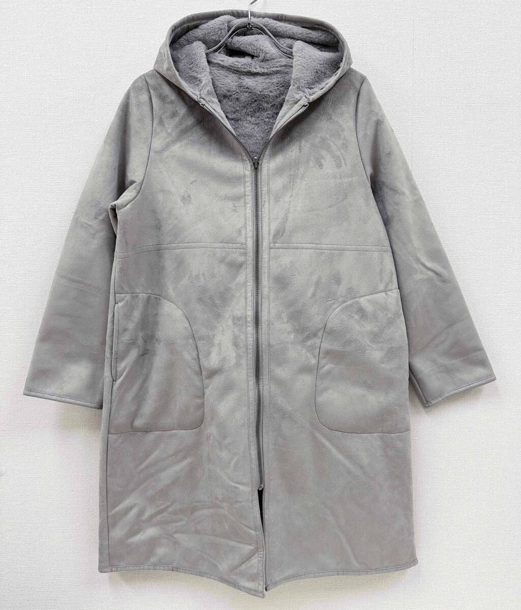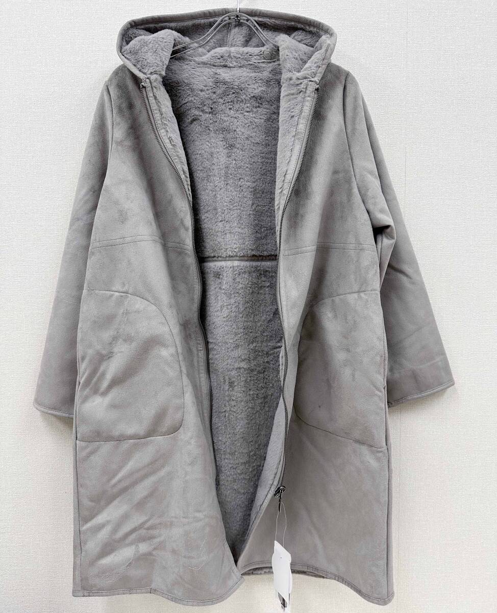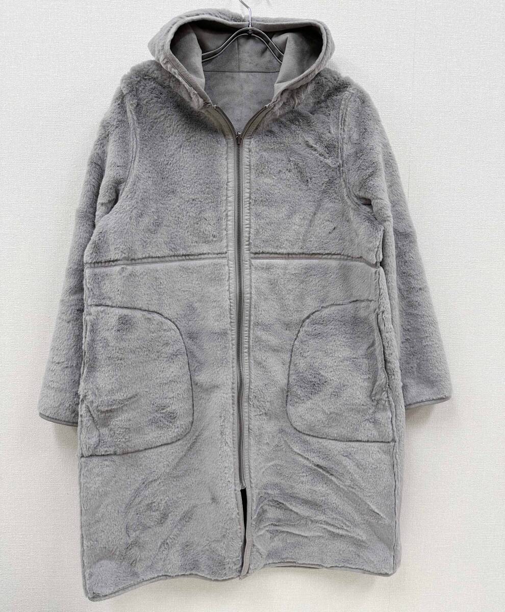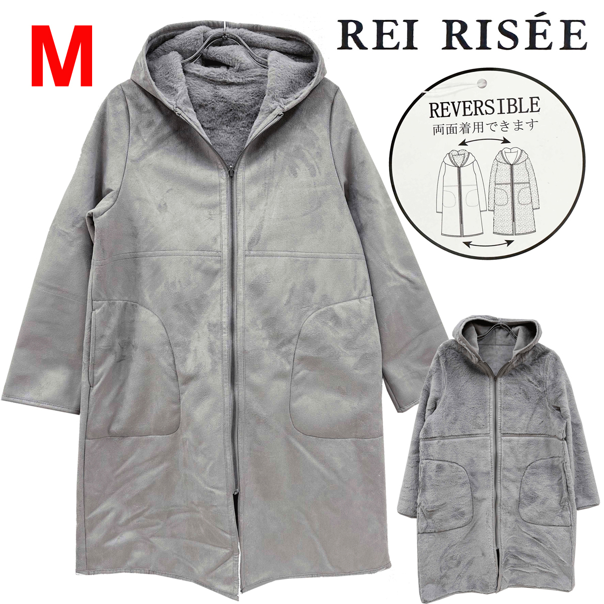 新品 M ★ コストコ REI RISEE レディース リバーシブル エコムートン コート フード付き グレー ボア レイリーゼ ロング ジップアップ