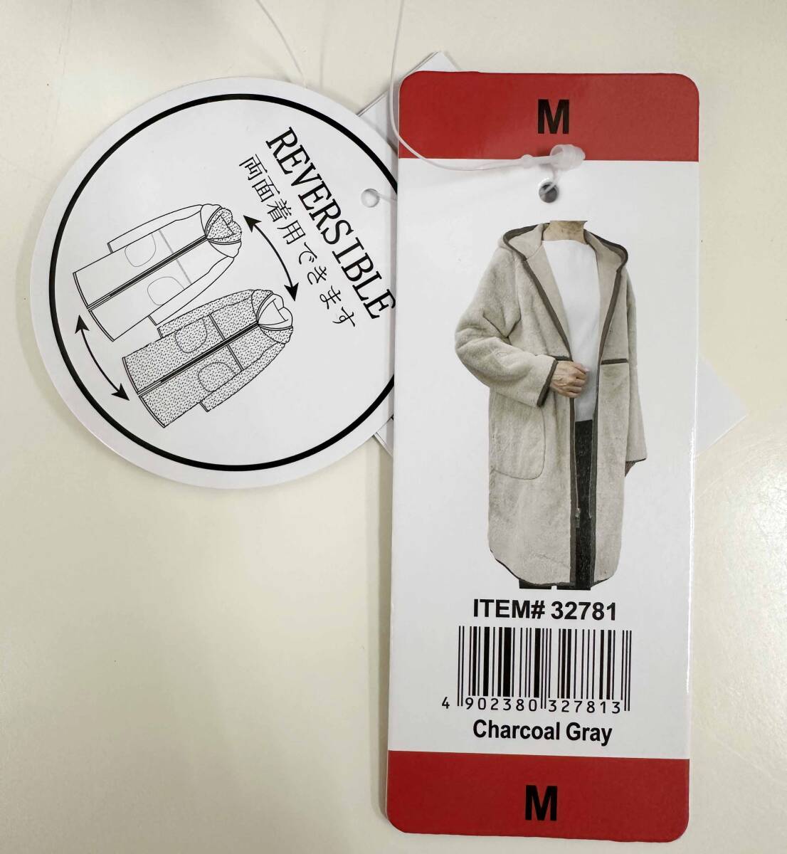 新品 M ★ コストコ REI RISEE レディース リバーシブル エコムートン コート フード付き グレー