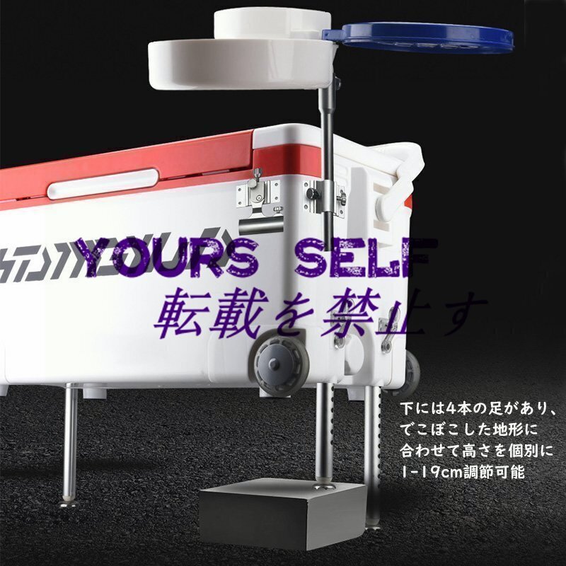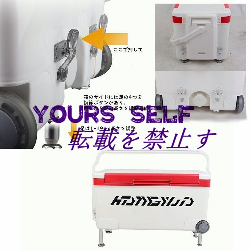 多機能 クーラーボックス旅行容量42L 釣り/アウトドア/キャンプ 座れる頑丈マッスルボディ キャスター付 持ち運び楽々 脚高さ調整可