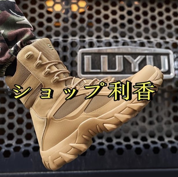 I241☆新品ミリタリーブーツメンズタクティカルブーツデザートブーツアウトドア作業靴防滑耐磨耗登山靴24.5cm~29cmカーキ