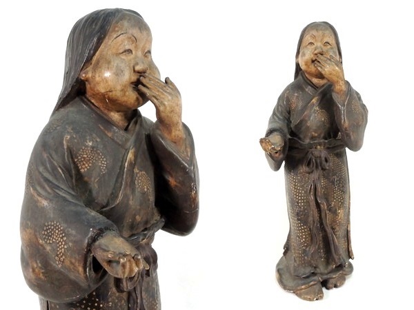 時代物/無銘/「乙御前/お多福」/彩色木彫立像/高:42cm/木造/木像/お福/おかめ/彫刻/置物/オブジェ/作家物/骨董/古美術/美術品