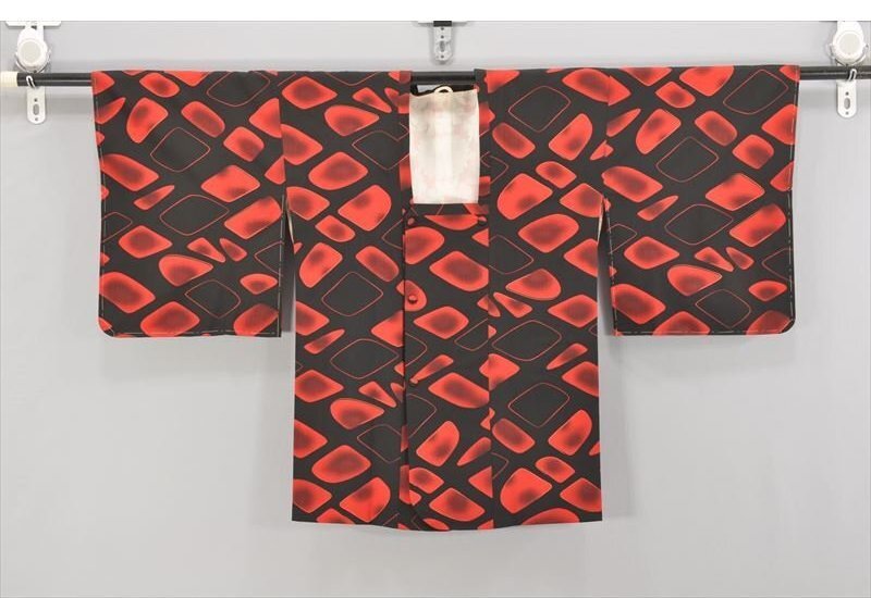 ▲まいど家 P7-09-21 道行きコート バブル模様 化繊 81㎝ 未使用品 古布 リメイク