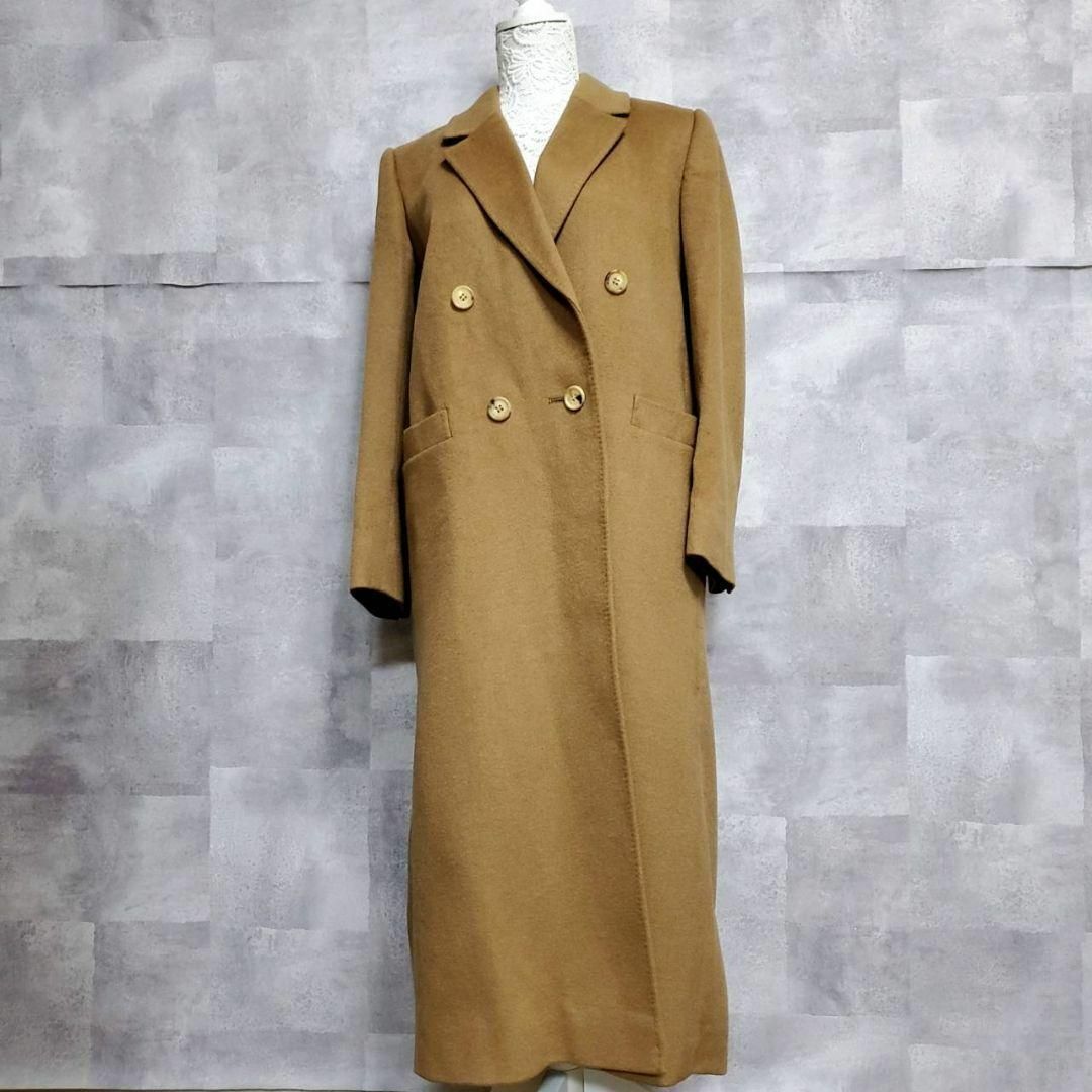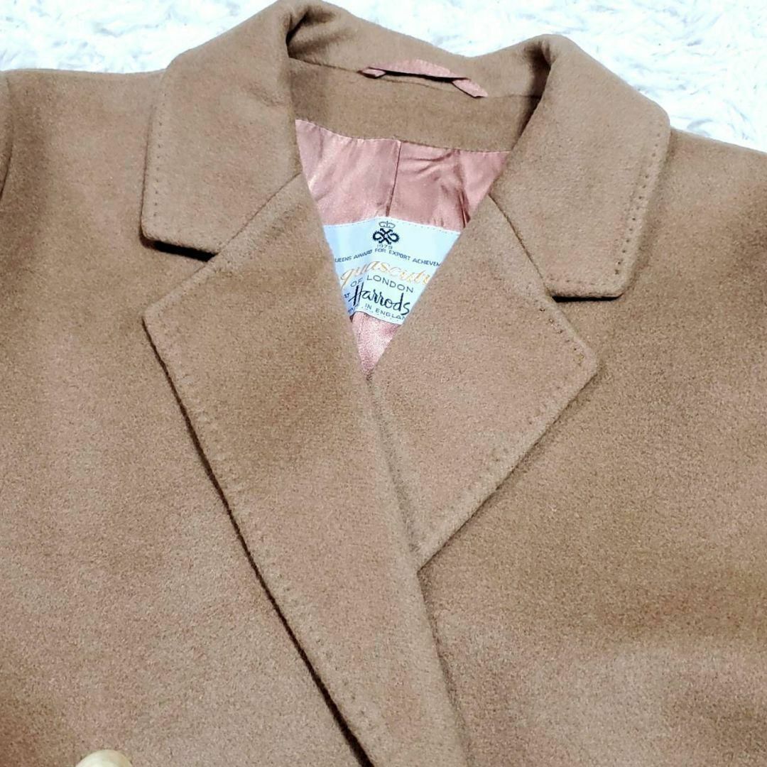 極美品 XL アクアスキュータム カシミヤ ロング コート 英国製 大きいサイズ Aquascutum カシミア マキシ丈 ダブル ブレスト キャメル ブラウン LL 2L