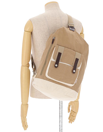 ナチュラル感とハード感が共存する新しいテイストの、帆布工房CROSS OVER シリーズのボンサックです。本体生地にはソフトな8号帆布パラフィン加工を使用。ショルダーは、左右付け替え可能で左右のどちらの肩でも持っていただけます。カジュアルテイストなお洋服にぴったり!カーキ、クロ/ベージュ、ベージュの背面とショルダーは、ベージュ。クロはクロです。 |