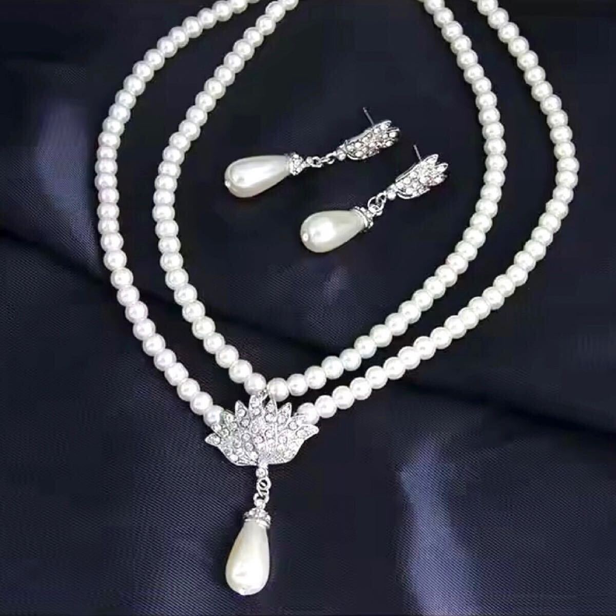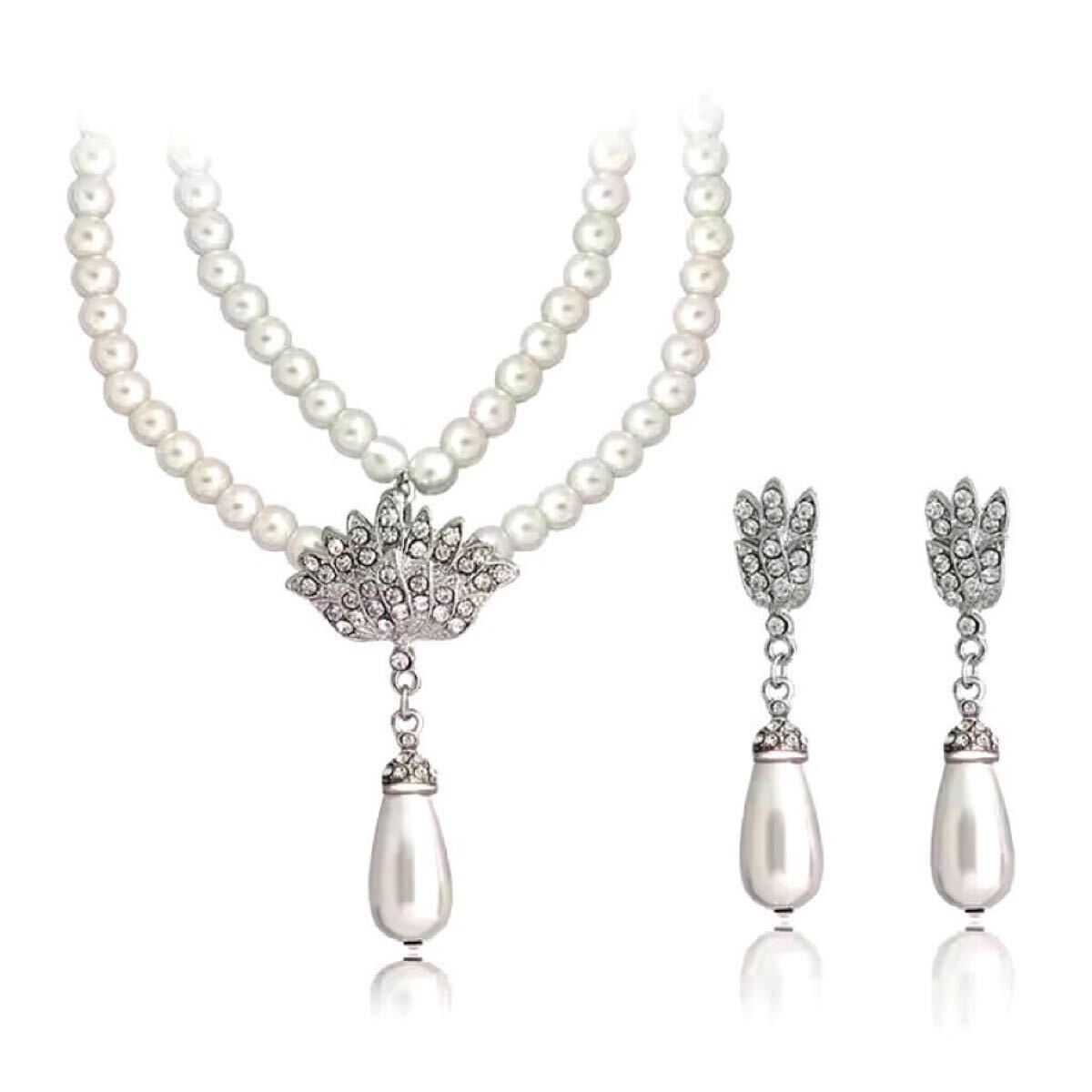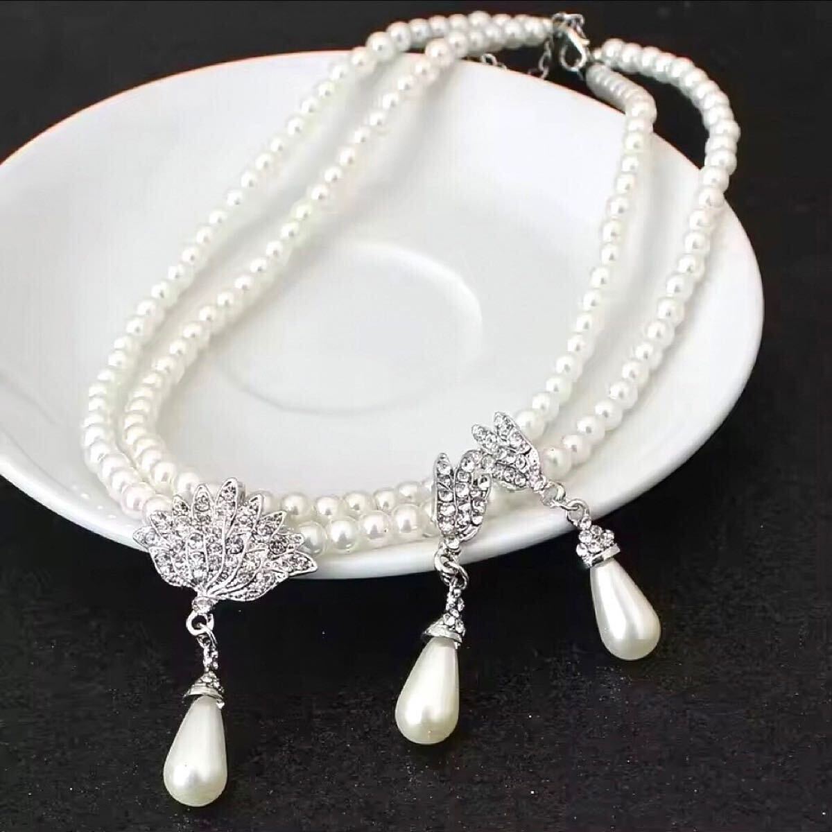 【普段使いにもウエディングにピッタリ! ピアスとネックレスの2点セット】