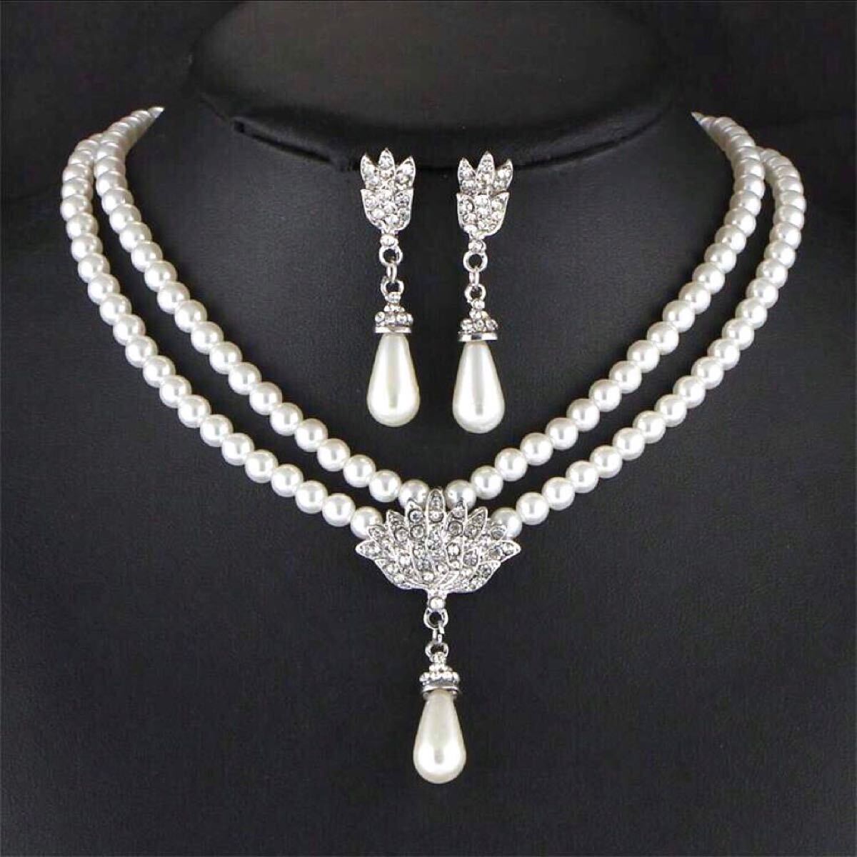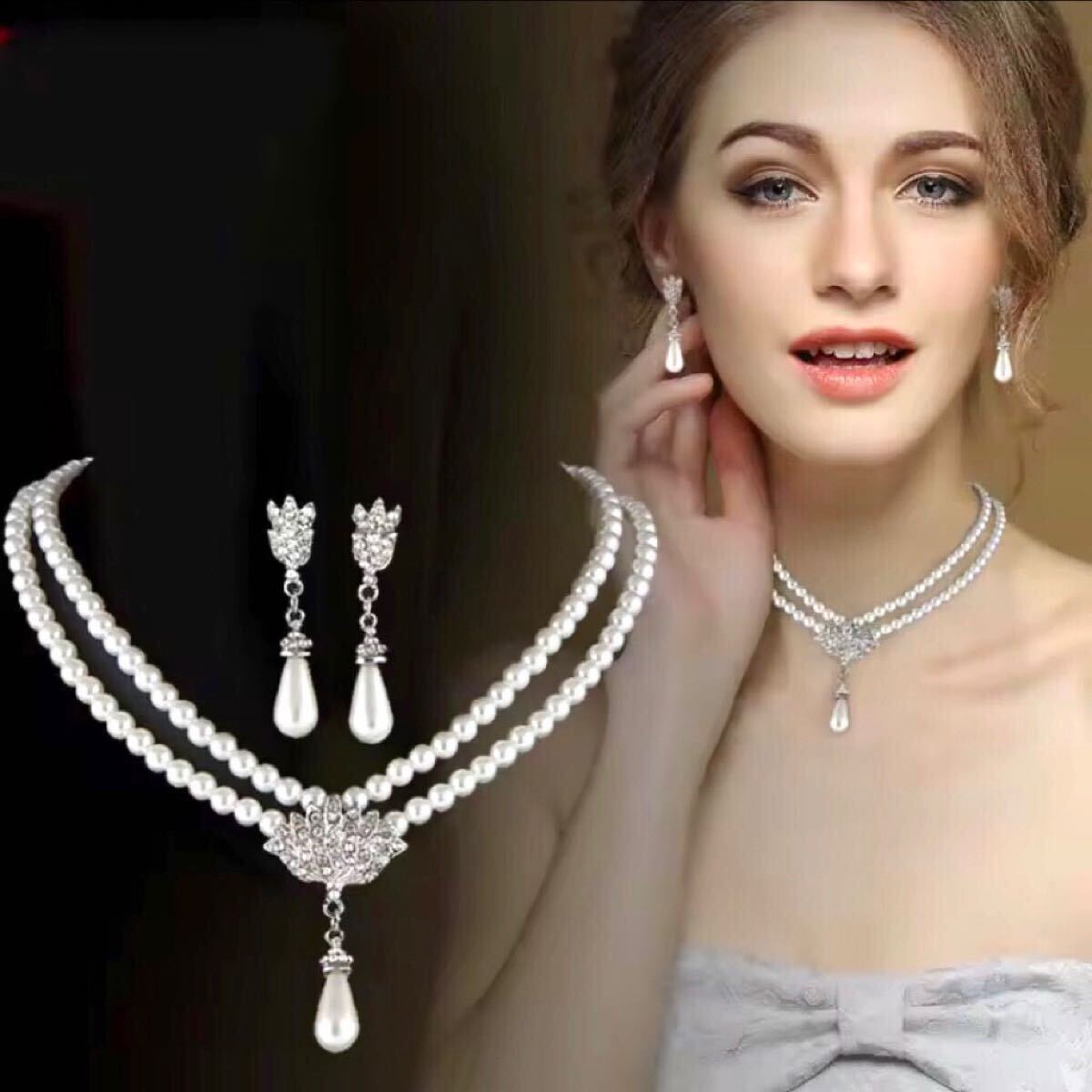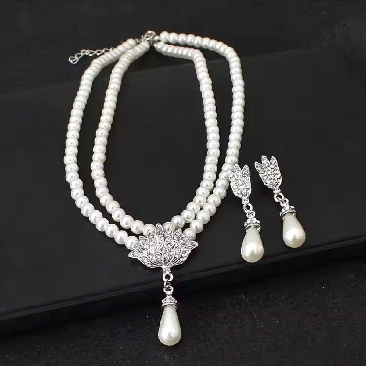 【普段使いにもウエディングにピッタリ! ピアスとネックレスの2点セット】