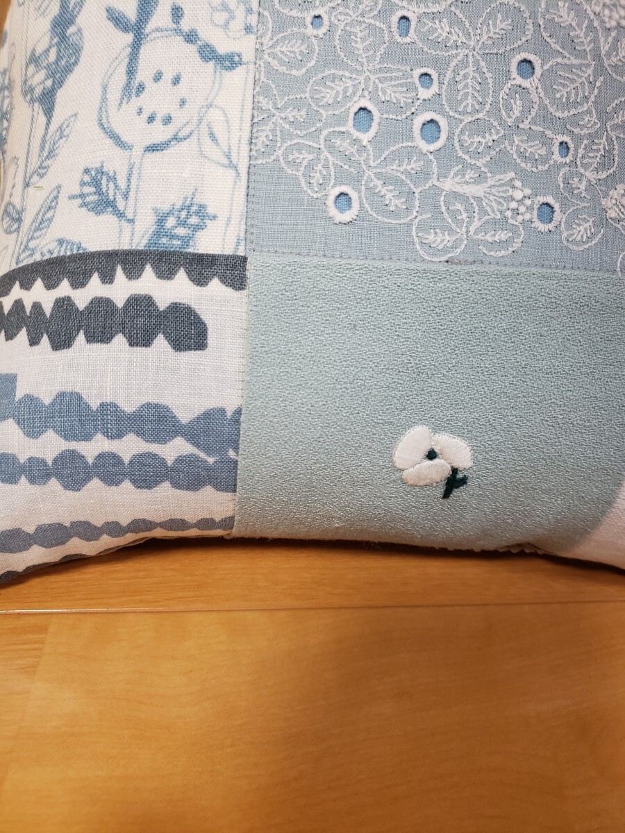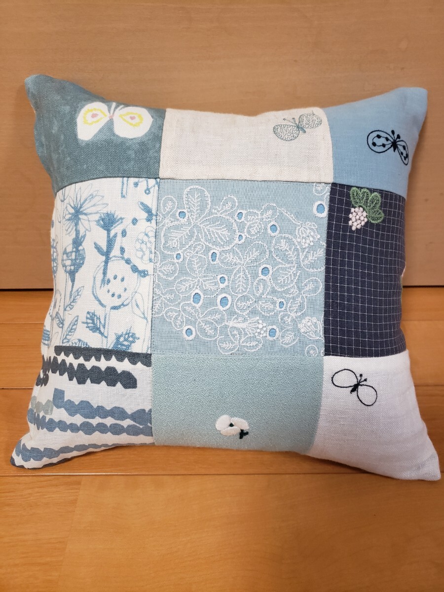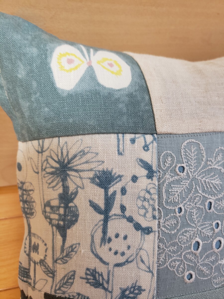 ミナペルホネンの生地でパッチワークしたクッションカバーを作成致しました。
