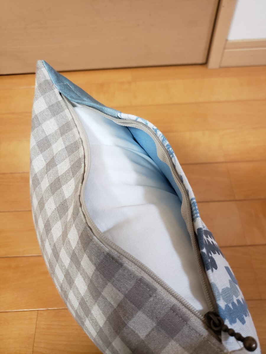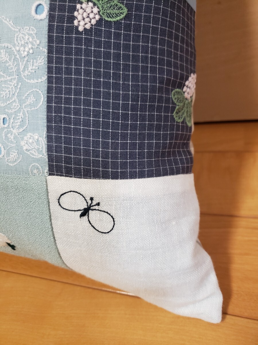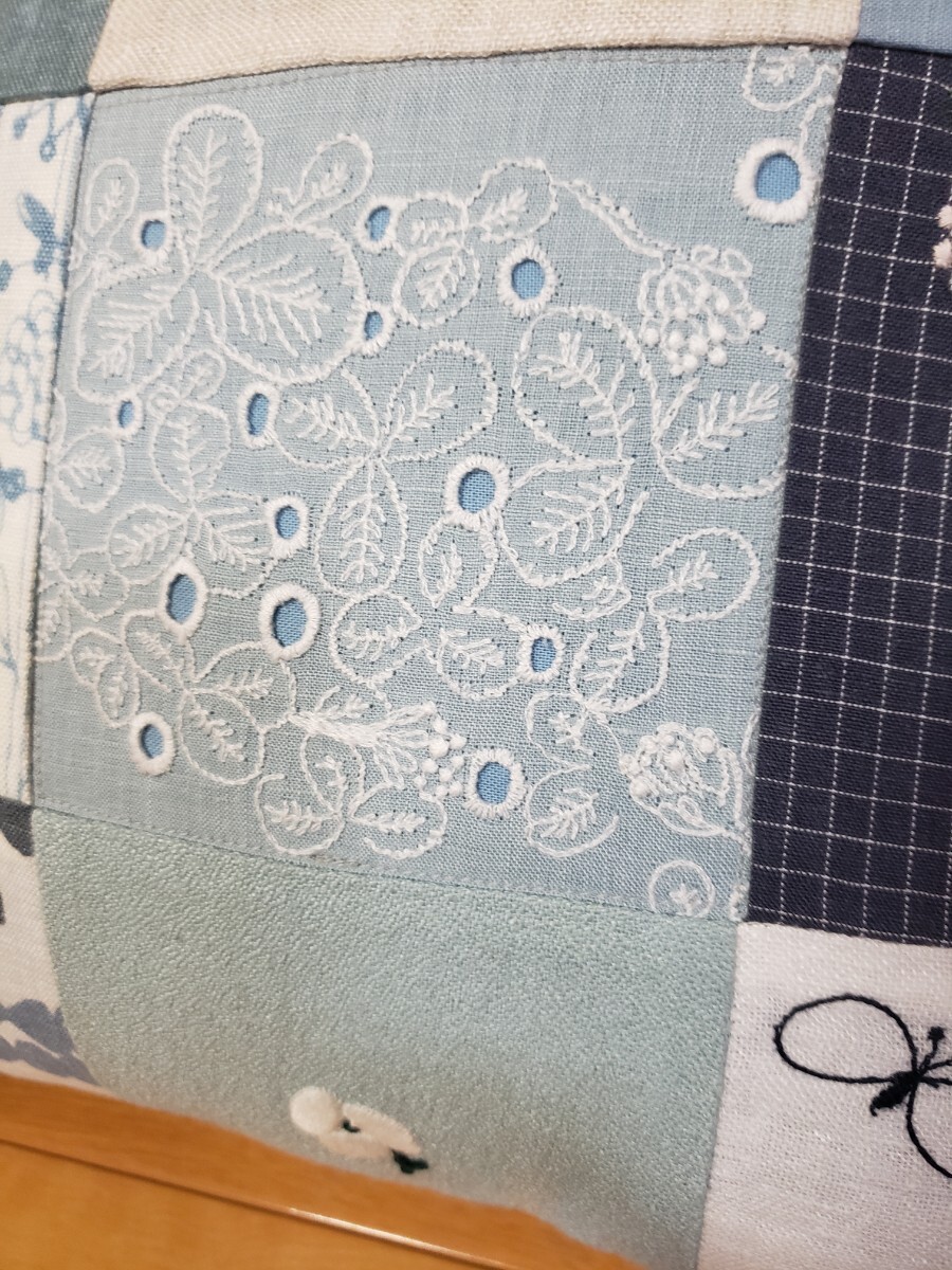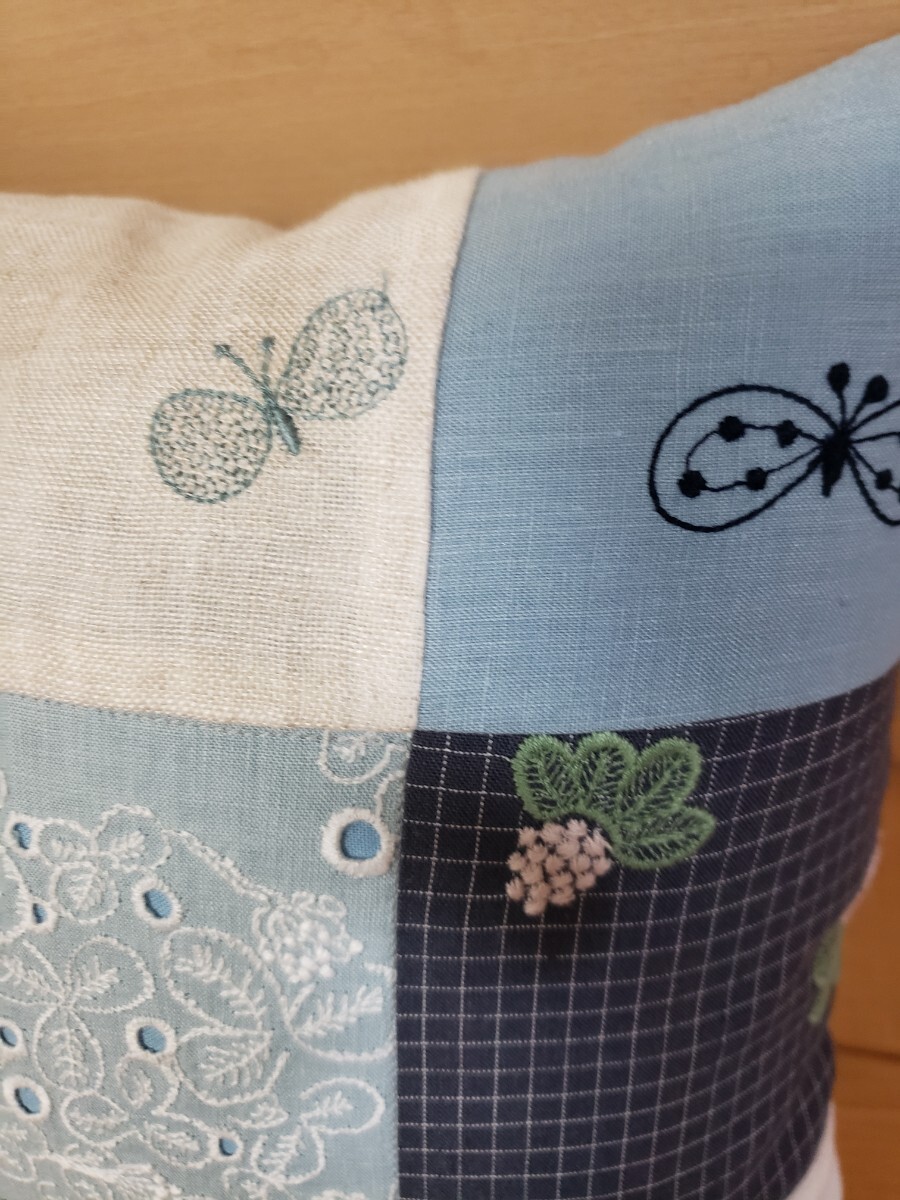 ミナペルホネンの生地でパッチワークしたクッションカバーを作成致しました。