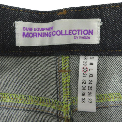 未使用品 メイプル MORNING COLLECTION by melple ジーンズ デニム クロップド丈 裾ダブル 日本製 インディゴ ブルー 青 30