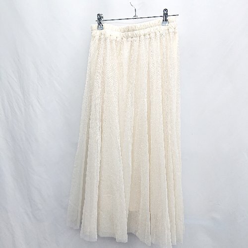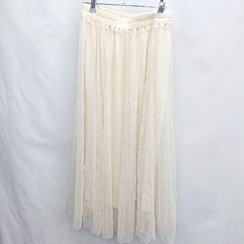 ◇ ⊂ ◎ ●美品● Brownie ブラウニー ウエストゴム ラメ ロング丈 フレア スカート サイズF アイボリー レディース E