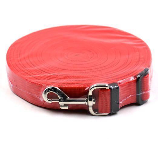 ロングリードです。10mや15mや20mのロングリードを使えば犬がほぼ自由に動くことができるので広い場所でたくさん走らせてあげたいときやトレーニング用に使用できます!