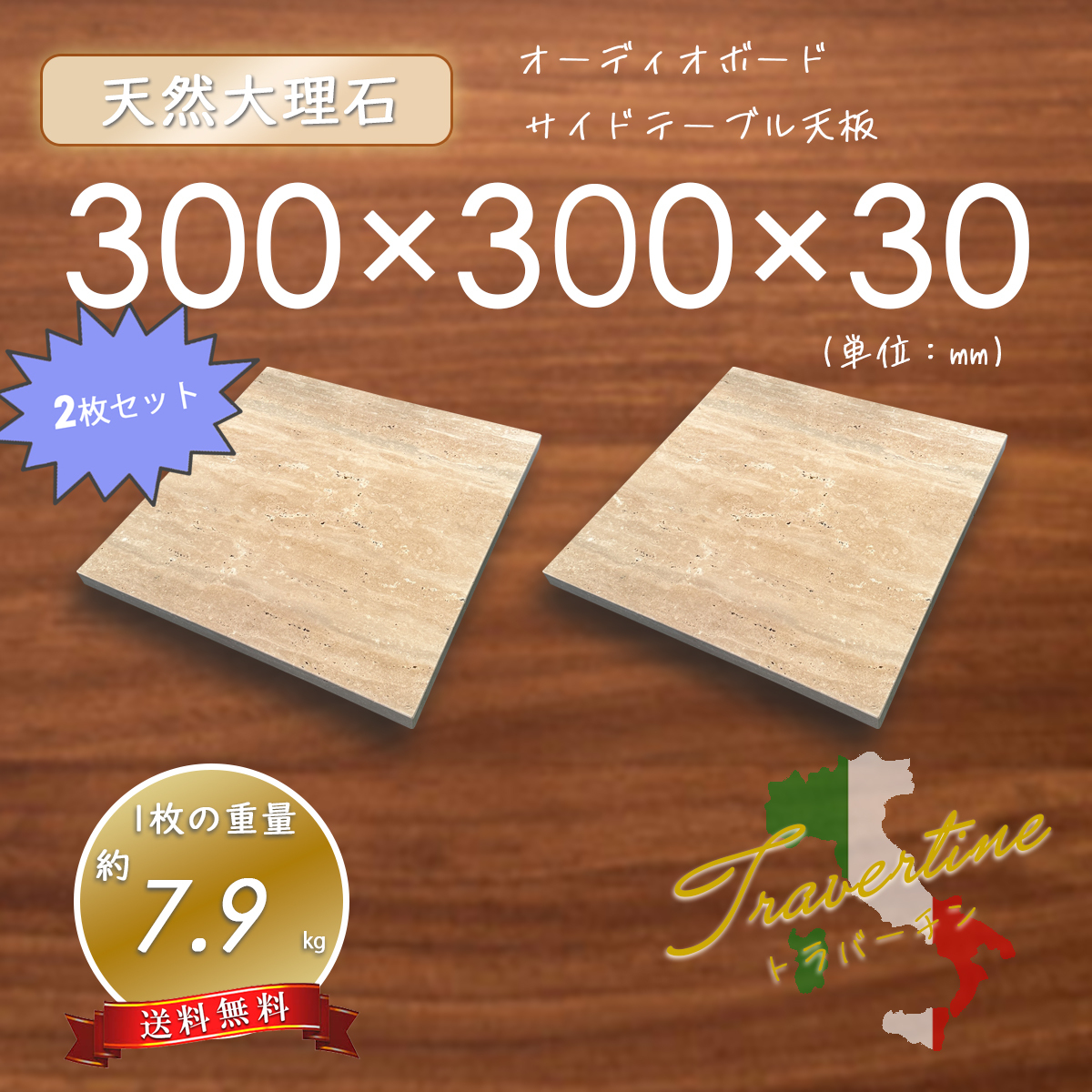 | 【高級天然大理石】 オーディオボード 天板 トラバーチン 300mm×300mm×30mm 2枚セット 新品 即決 送料無料 ★超特価★ | ||||