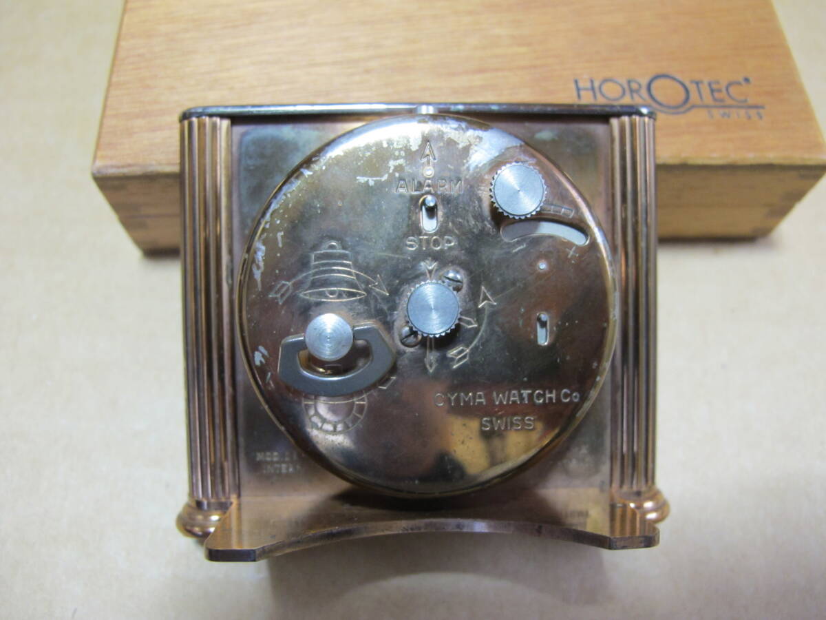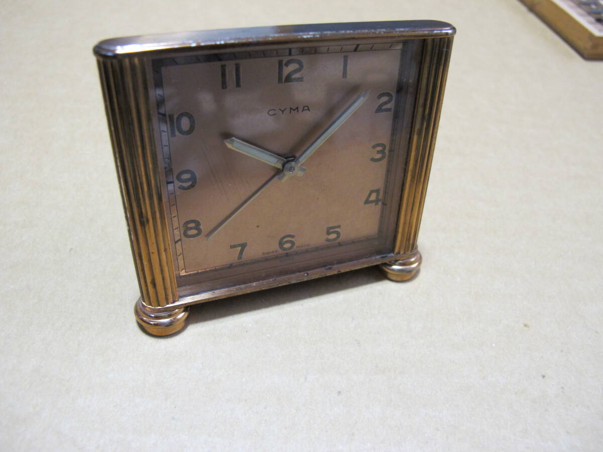 以前興味があって購入したものです。スイス シーマの置き時計(目覚まし付き)時計です。約半日動かしてみましたが問題なく動き、アラームも鳴りますが本格的に使用されるのでしたら整備が必要だと思います。古いものなので全体的に傷、くすみ、汚れ等あります。大きさは縦約7㎝、横約7.5㎝、幅約3.5㎝です。ガラス風防は目視で見る限り傷はなくきれいです。写真を参考にしてください。あまり詳しいことはお答えできないかもしれませんが出来るだけ対応します。このような状態でも興味のある方よろしくお願いします。なお、この商品につきましてはノークレーム・ノーリターンにてお願いします。発送はゆうパック等を考えています。
