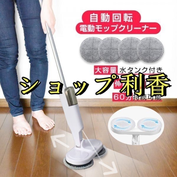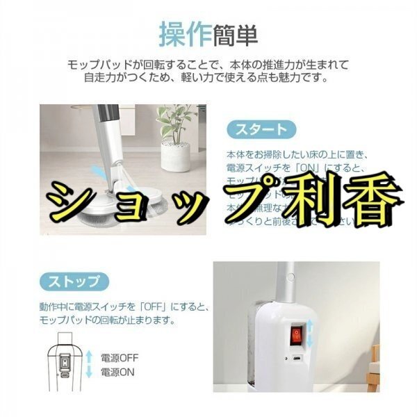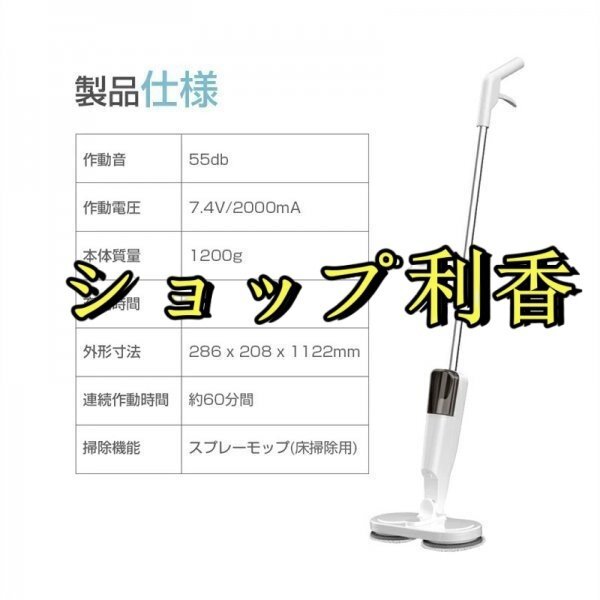 電動モップ 回転モップ コードレス 回転モップクリーナー パッド付き 水噴射 スプレー機能 電動回転モップ 充電式 水拭き 静音作動 床掃除