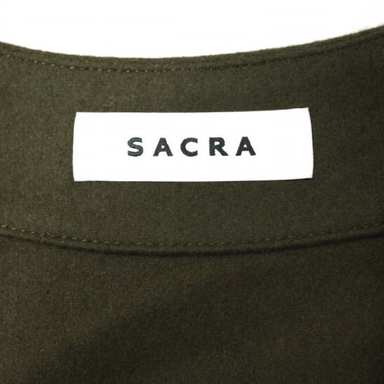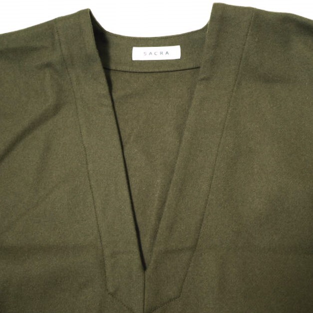 SACRA サクラ 23AW 日本製 HIGH COUNT MELTON OP ハイカウントメルトンワンピース 123608041 38 カーキ スキッパー ロング ドレス g20619