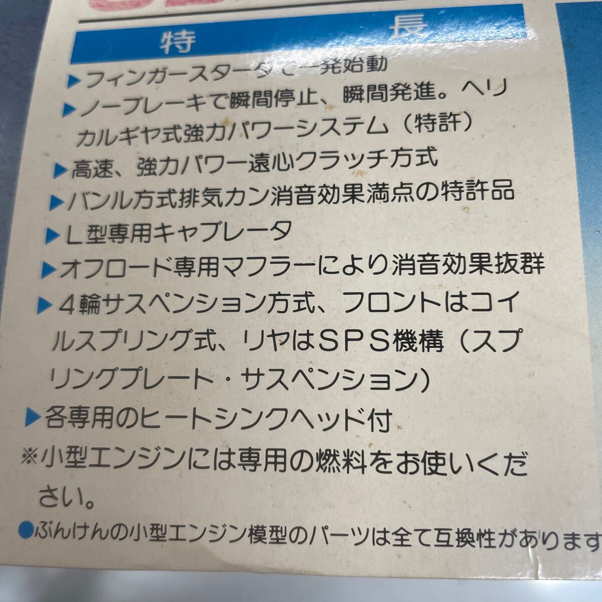 譲りうけた物なんですが、ぶんけんのエスパーZと思われます。箱あるんですが、ボディが異なります。本来マイティボーイまたは、パジェロみたいですが、写真のボディになります。タイヤの変形もなく、状態はいいです。エンジンは、049が搭載されていると思います。L型専用キャブレター付です。