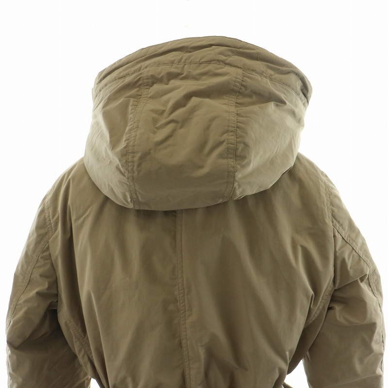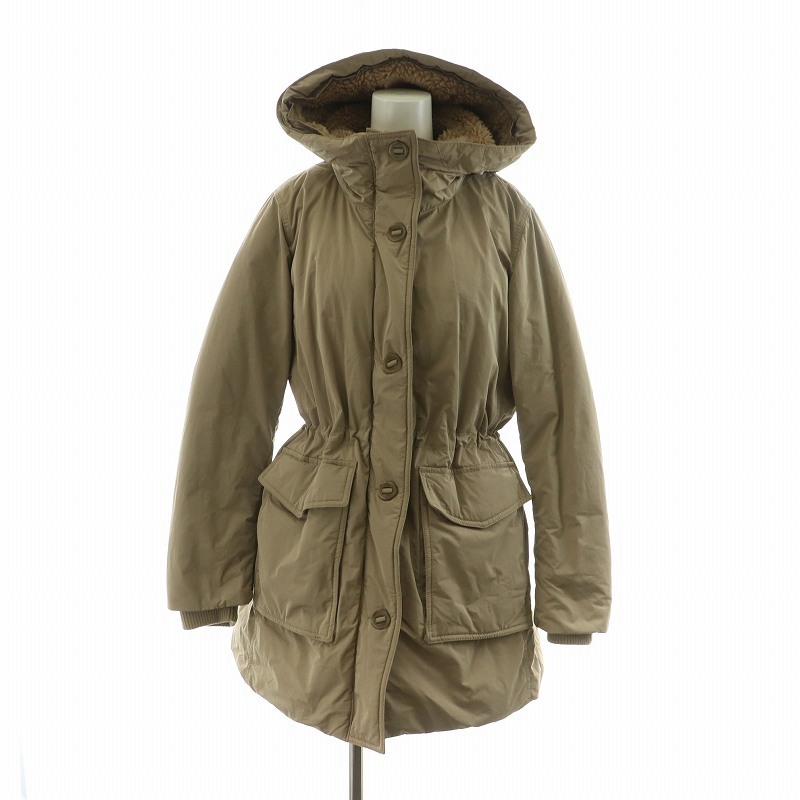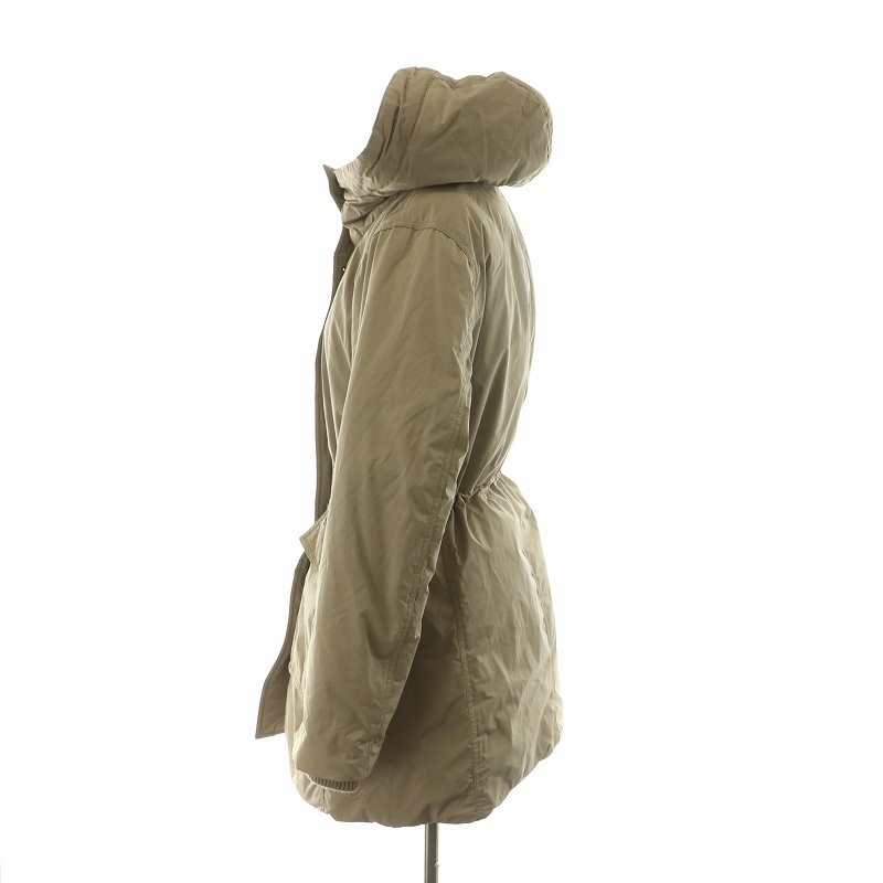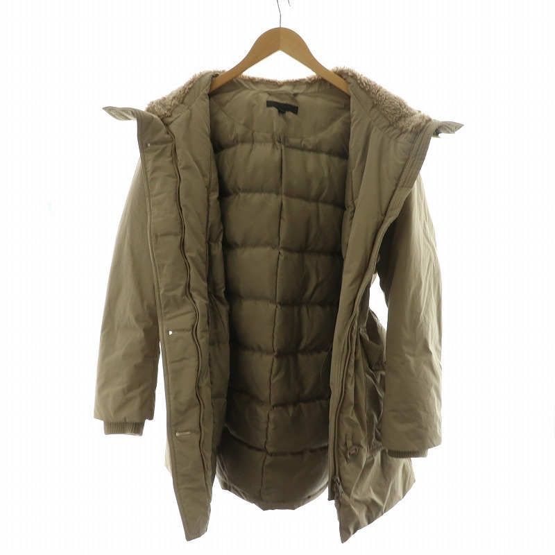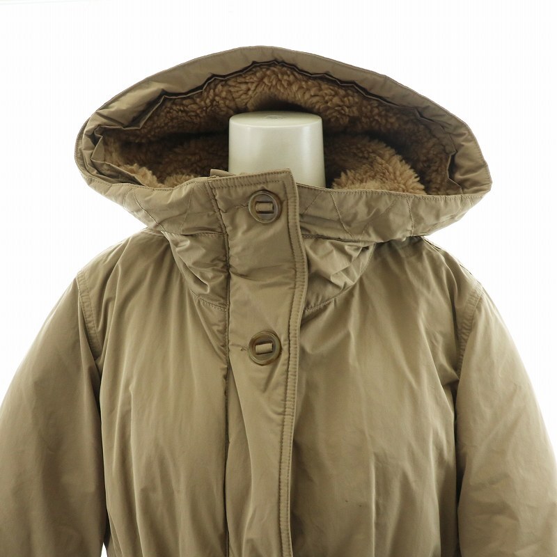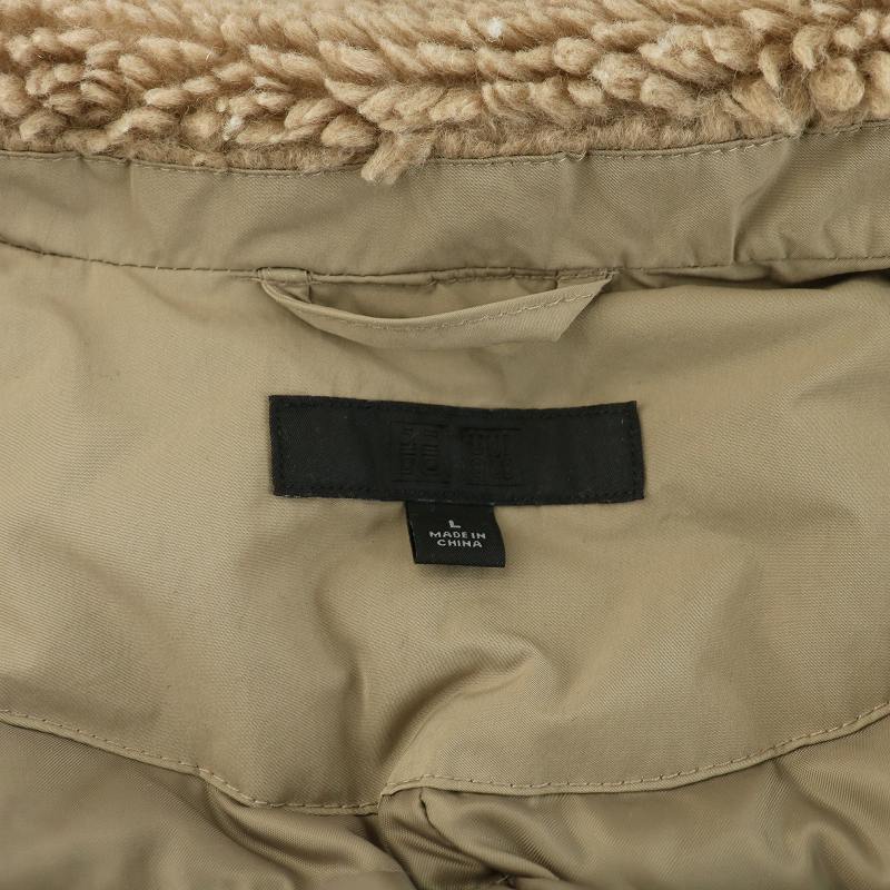 ユニクロ UNIQLO ダウンジャケット アウター フーディー フェイクファー ミドル ハーフ ダブルジップ ドロスト フード L ベージュ