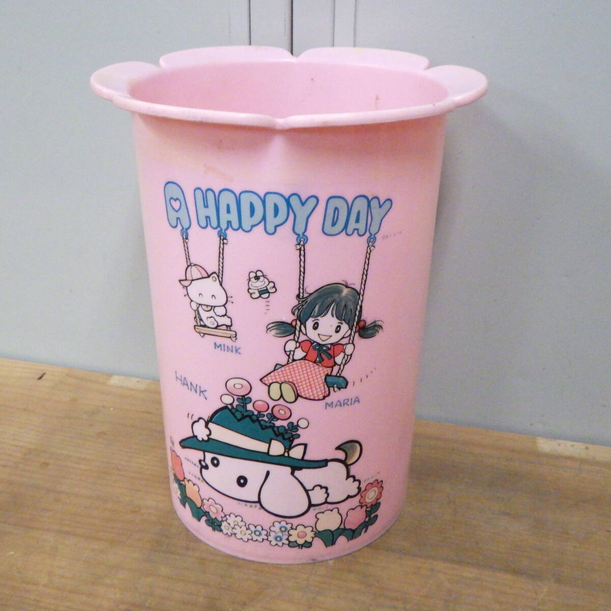 あべまりあ ゴミ箱 昭和 レトロ 日本 ヴィンテージ アンティーク かわいい イラスト 犬 花 併売