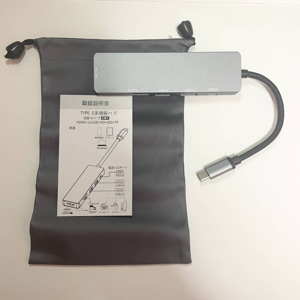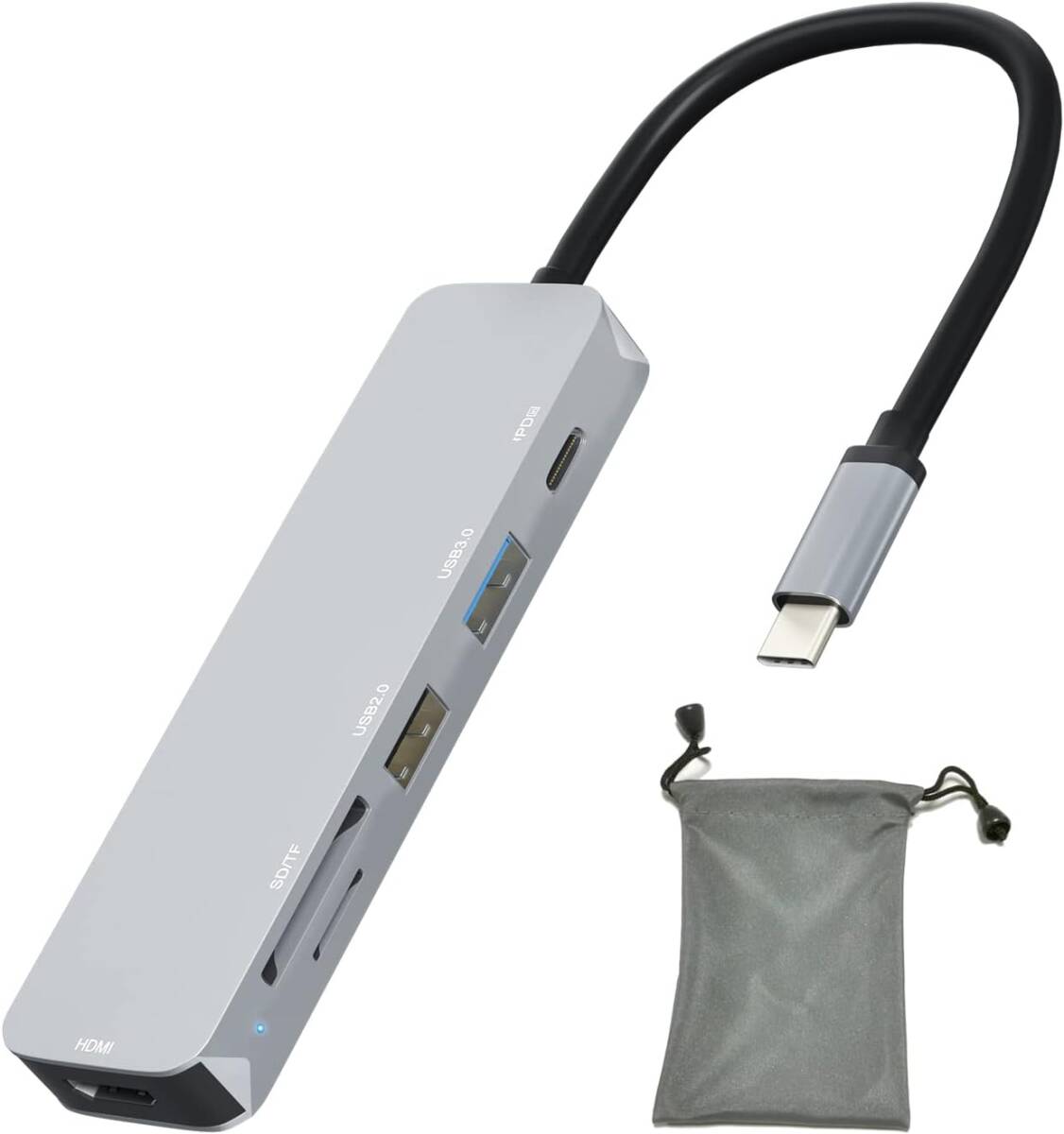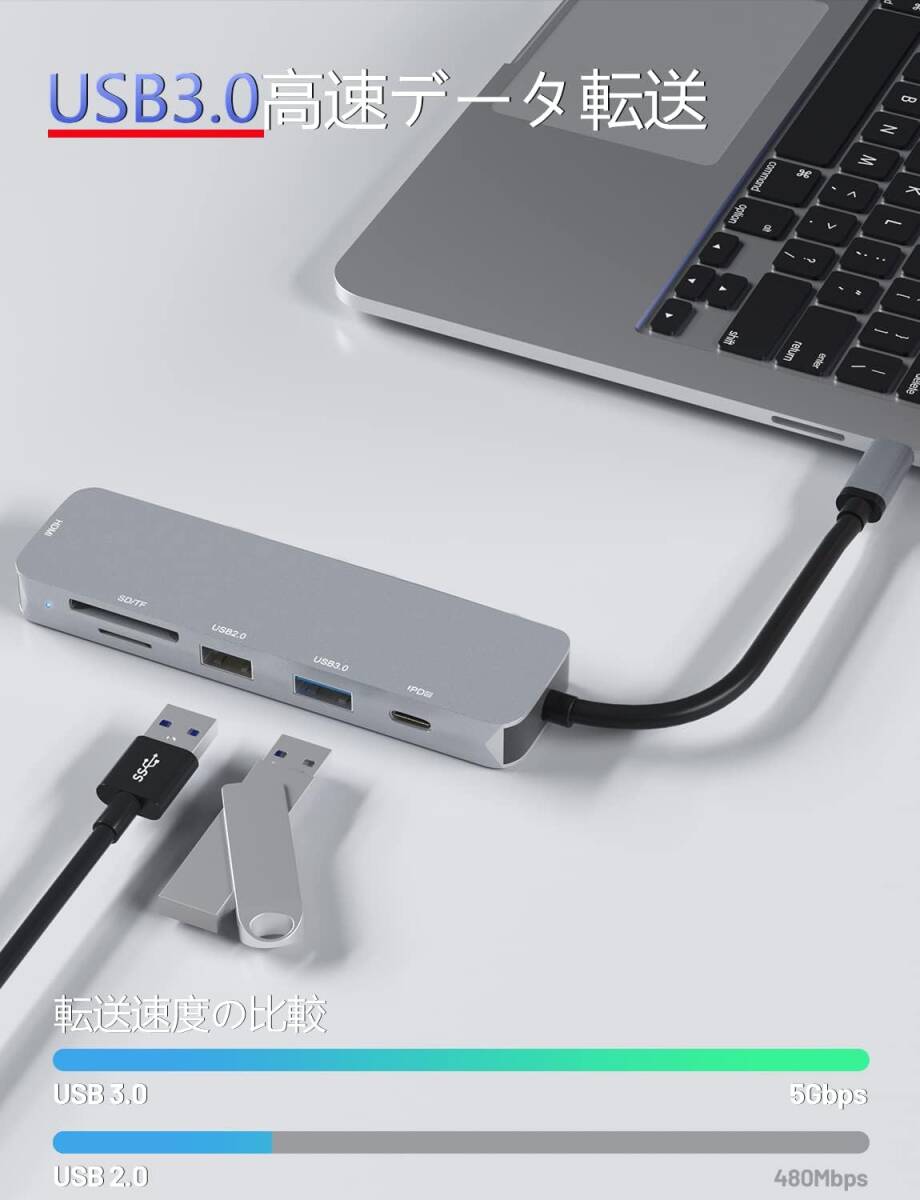 USB C ハブ USBハブ マルチポート C アダプター 6in1 USB ハブ 4K@30 Type c HDMI出力+SD/TF+USB 3.0+USB 2.0 データ転送ポート + 高速PD90W 充電ポート アダプター MacBook Pro/MacBook Air/iPad Pro,Surface Pro 7対応(Gray)