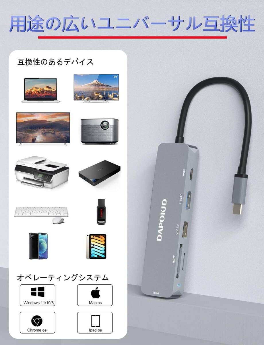 【4K高解像度画質&作業効率アップ】① HDMIタイプc変換出力4K HDビデオを大画面に出力し、より鮮明で大きな視覚効果を楽しむ;② SDカードとTFカードスロット最大読み取り速度480mbps、512GBと最大互換性は、同時にSDカードとTFカードを読むことができ、コンピュータ用のSD / TFカードスロットを追加します。