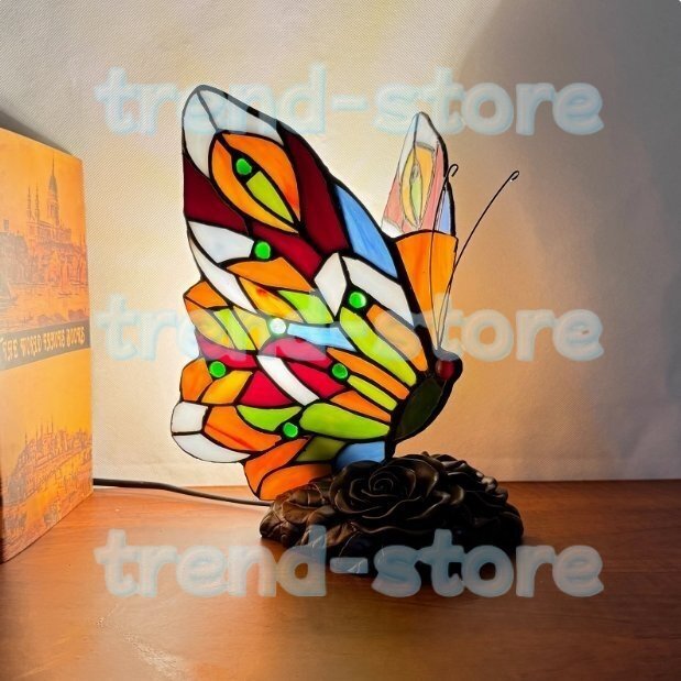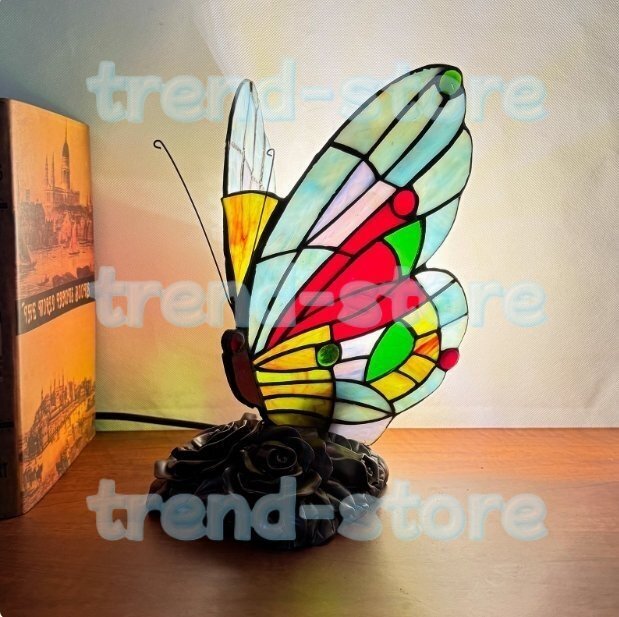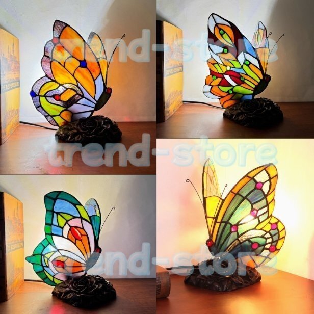 ◆稀少品◆芸術品◆ステンドランプ ステンドグラス 蝶 照明 レトロな雰囲気 室内装飾 ティファニー デスクライト