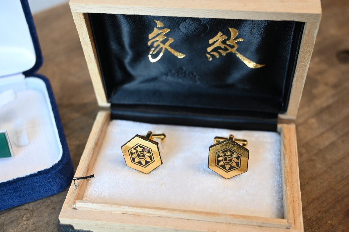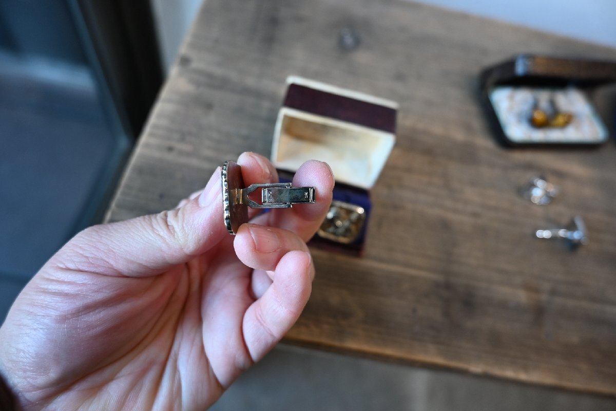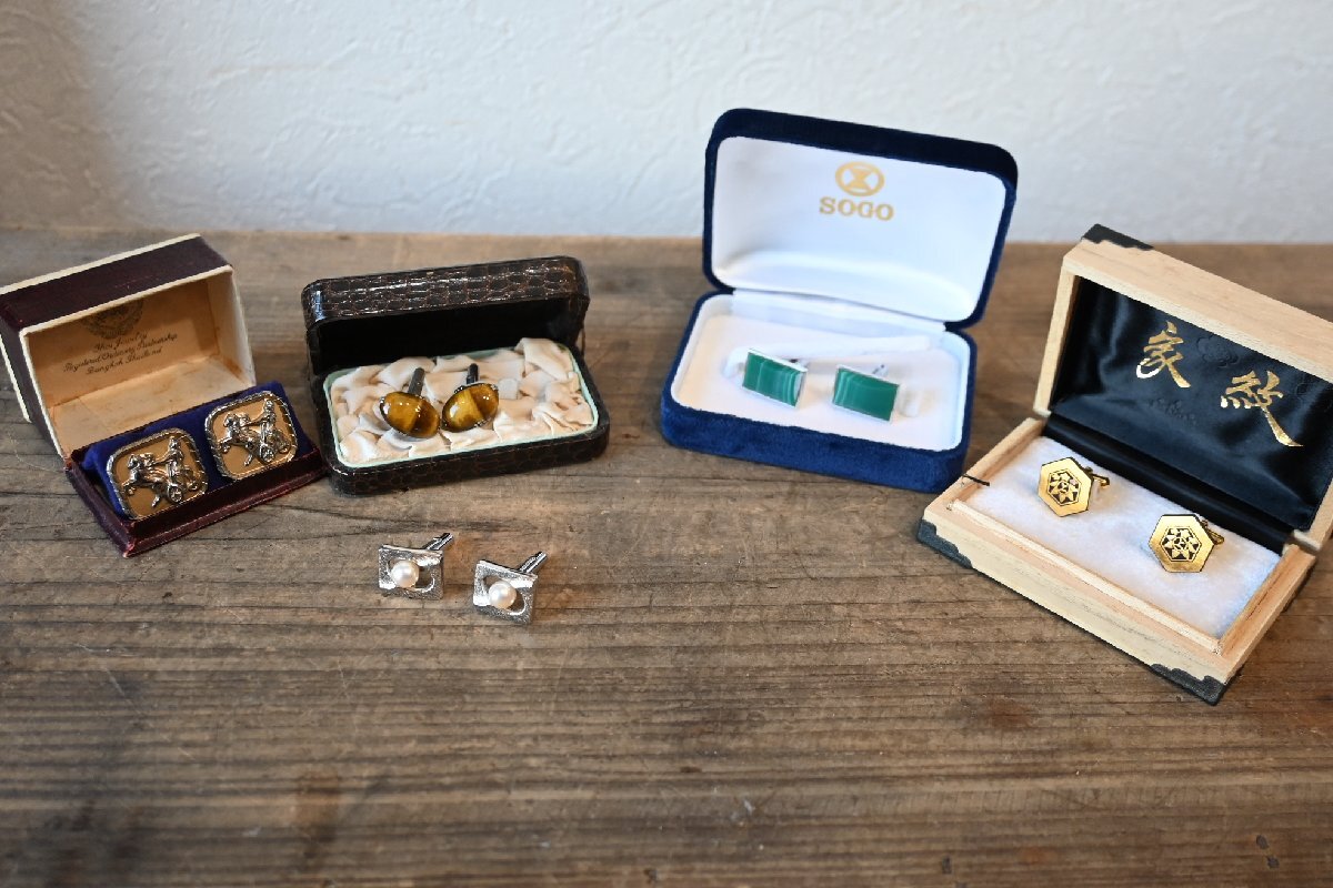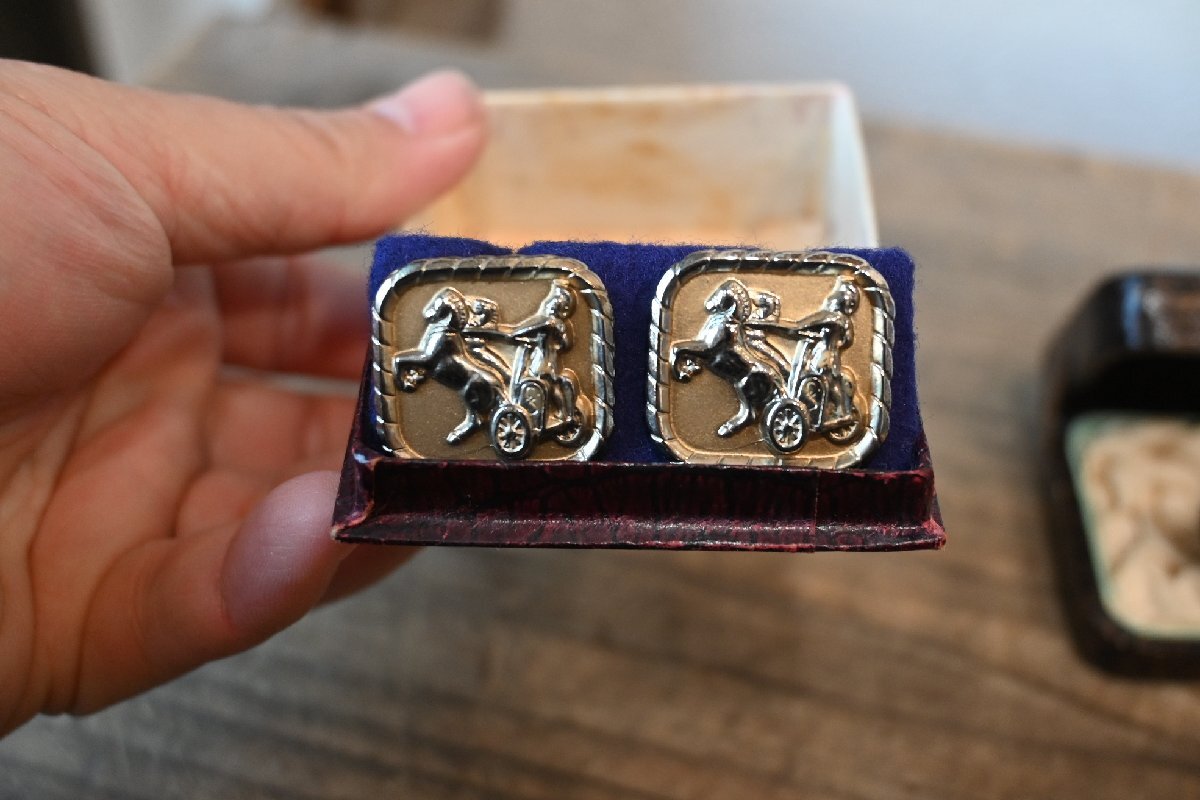 ○レトロなカフスボタン 5組セット 馬車柄 家紋柄 グリーン天然石 ヴィンテージ 古道具のgplus広島 2501i