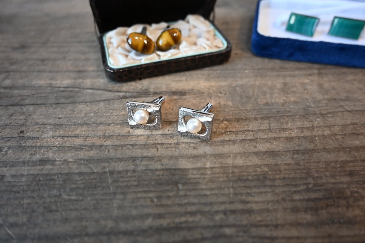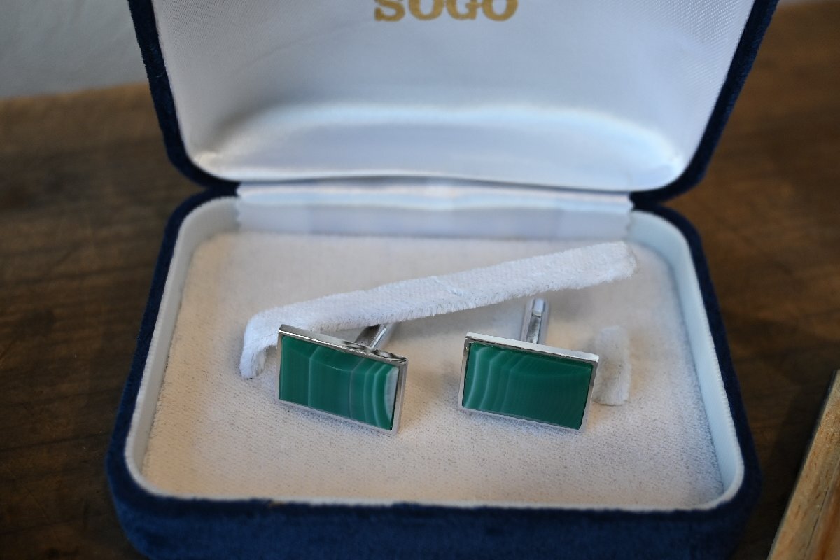 title:レトロなカフスボタン 5組セット 馬車柄 家紋柄 グリーン天然石 ヴィンテージ 古道具のgplus広島 2501i