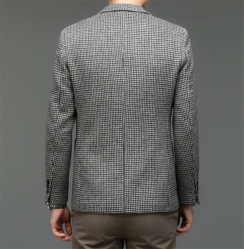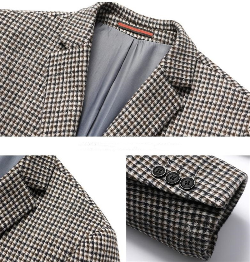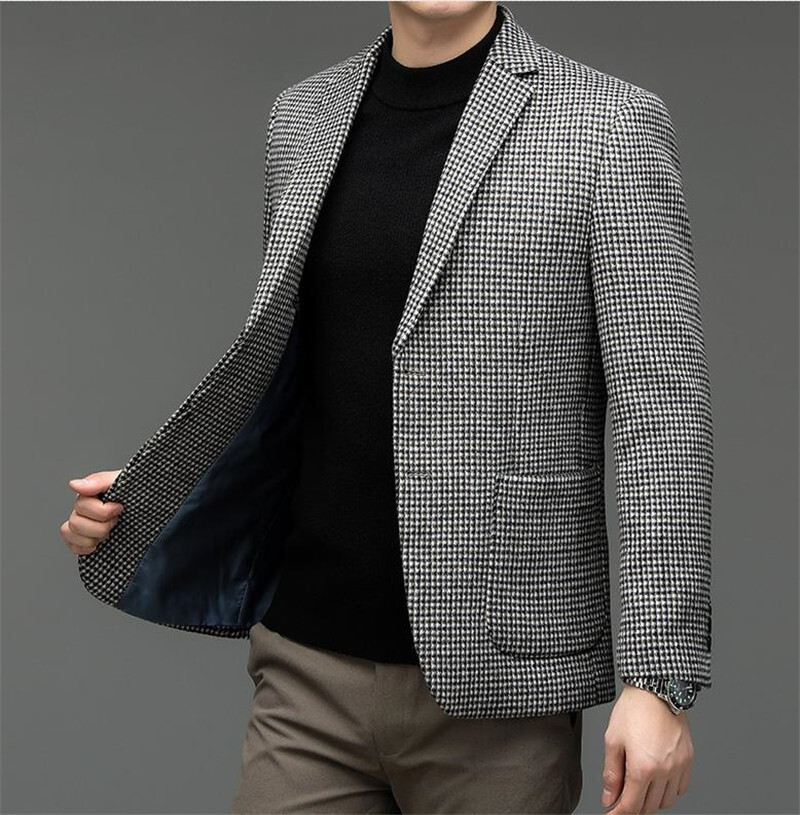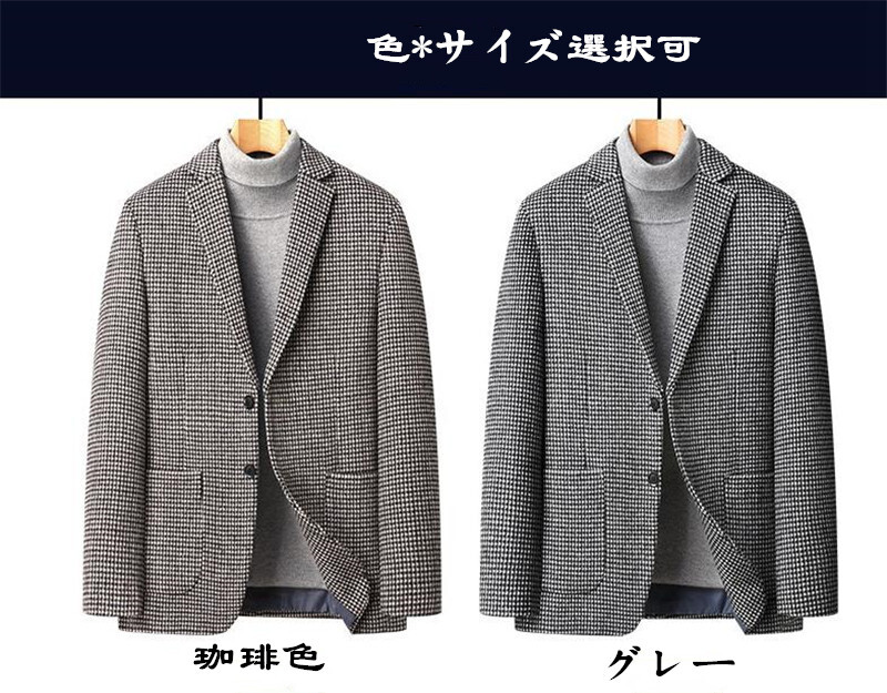 ウールジャケット 千鳥格子 テーラードジャケット 春秋冬服 ビジネスジャケット スーツ メンズ*新品 ブレザー【215】珈琲色【M-4XL選択】