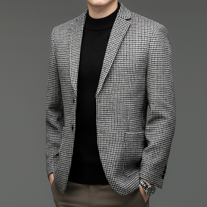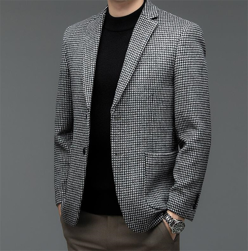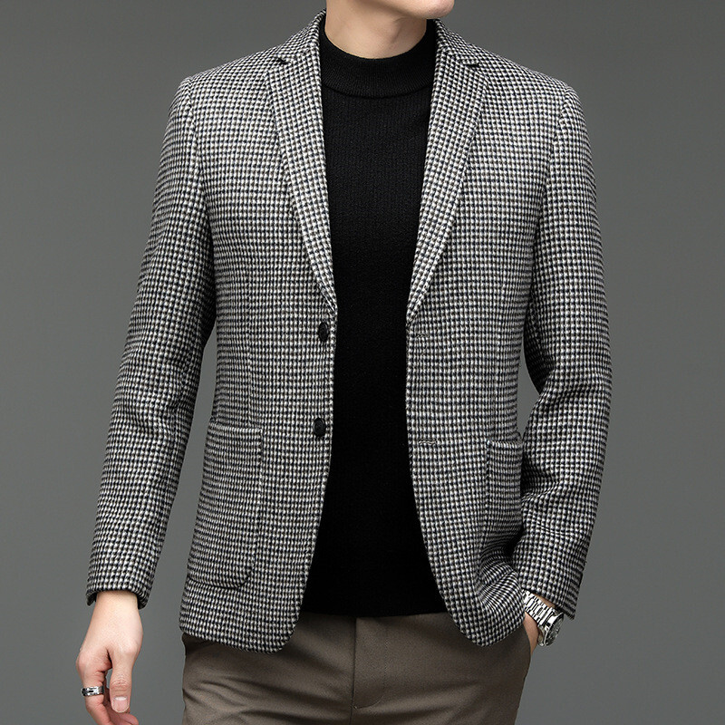 ウールジャケット 千鳥格子 テーラードジャケット 春秋冬服 スーツ メンズ*新品 ブレザー【215】珈琲色【M-4XL選択】
