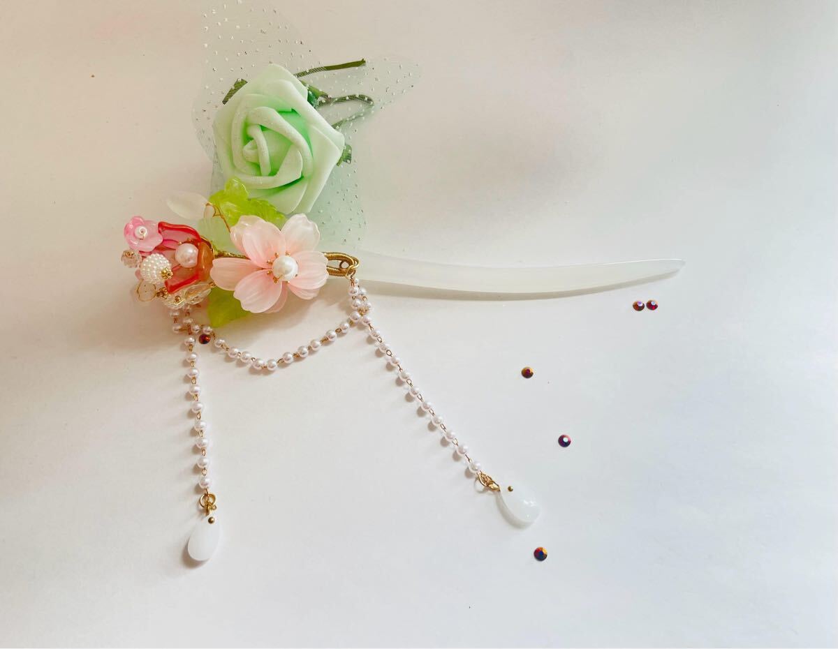 美しいパールとラインストーンをあしらった素敵な簪のご紹介です。