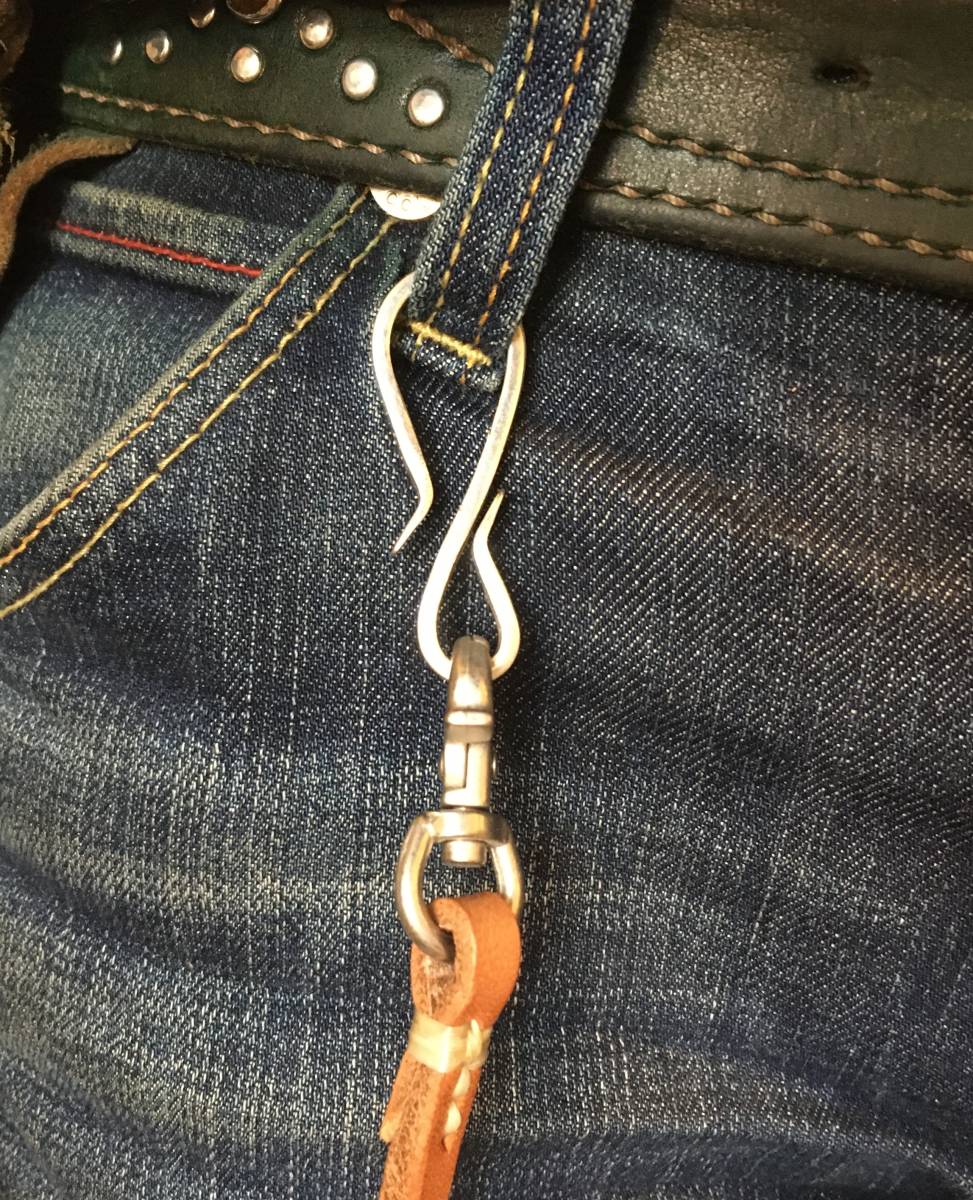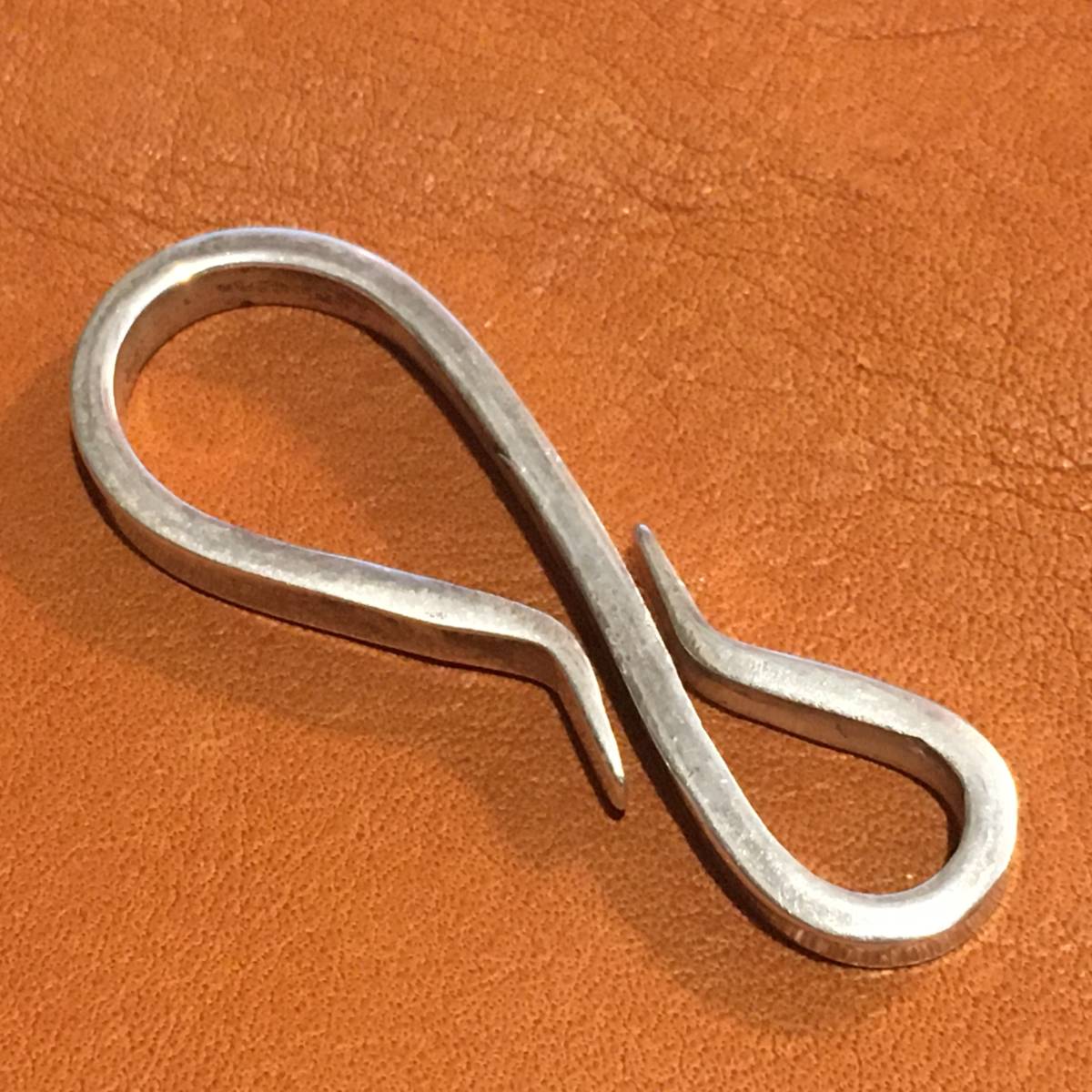 ネパールの仏像職人に手作りしてもらった、シルバー925のアクセサリー用シルバーフックです。鋳造ではなく叩き出しです。オリジナルですので他にはありません。サイズは写真を参考にしてください。重さは平均値です。レザーロープの先に付けてベルトループにかけるのに向いています。